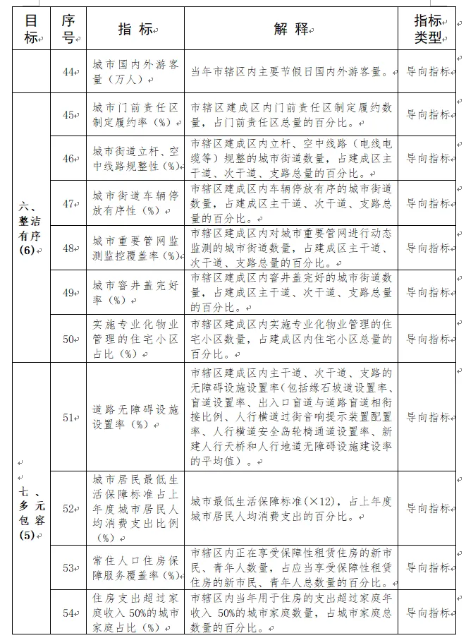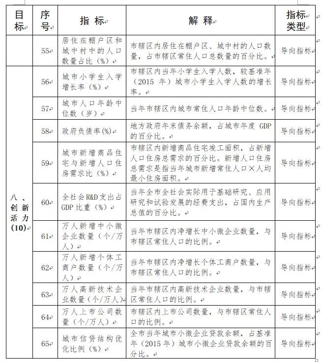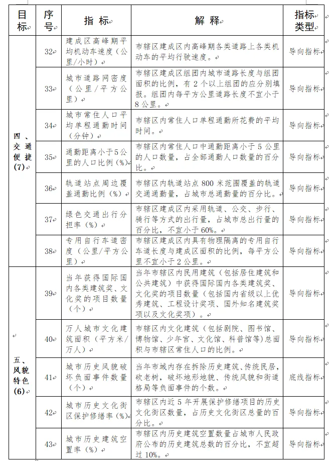 由生态宜居、健康舒适、安全韧性、交通便捷、风貌特色、整洁有序、多元包容、创新活力8个方面、65项指标构成城市体检指标体系。(如下图)