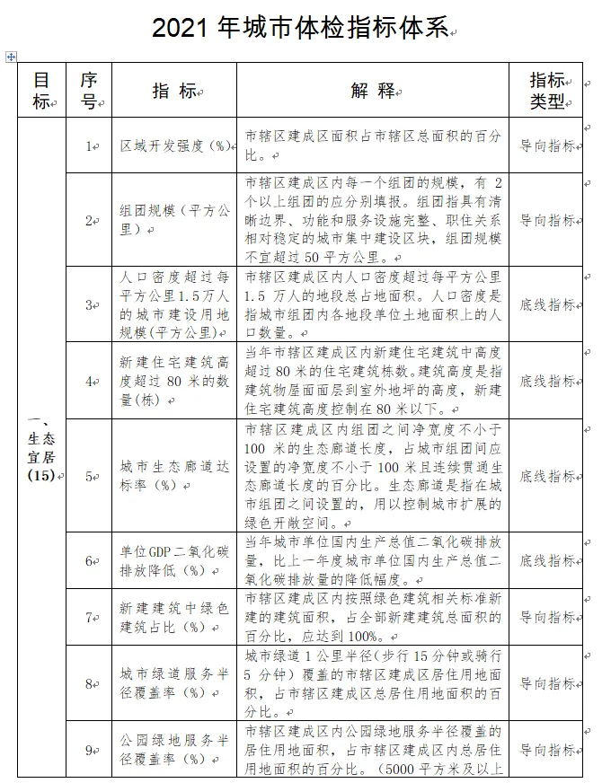 发布了关于开展2021年城市体检工作的通知