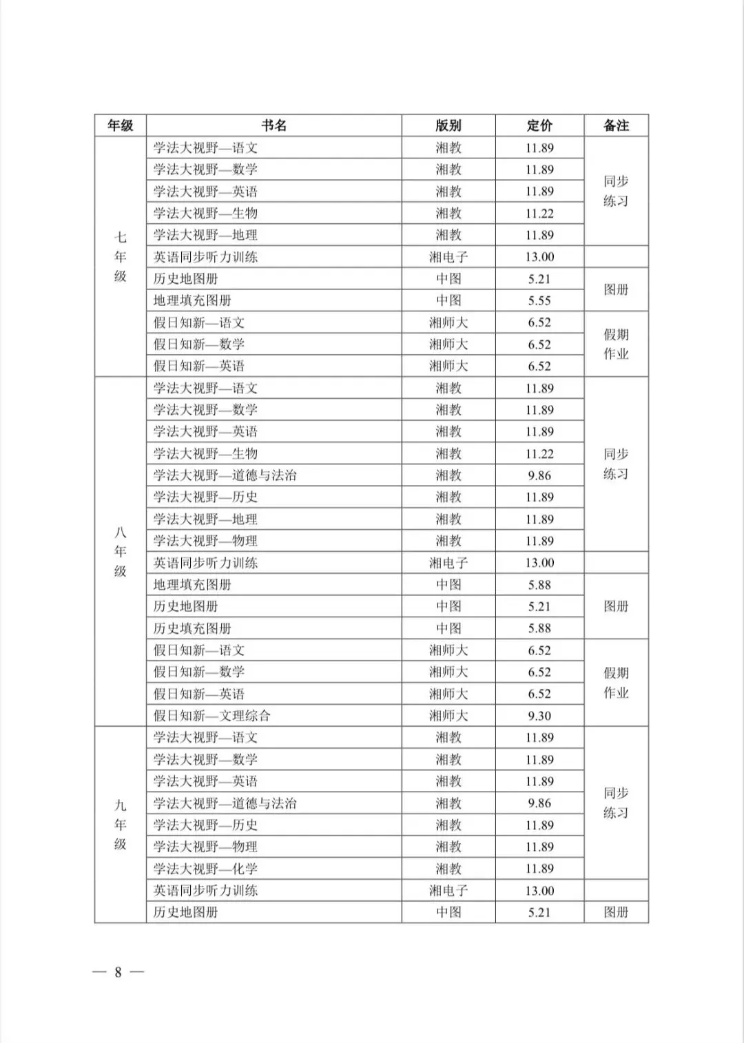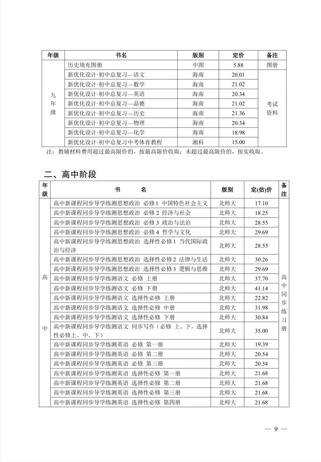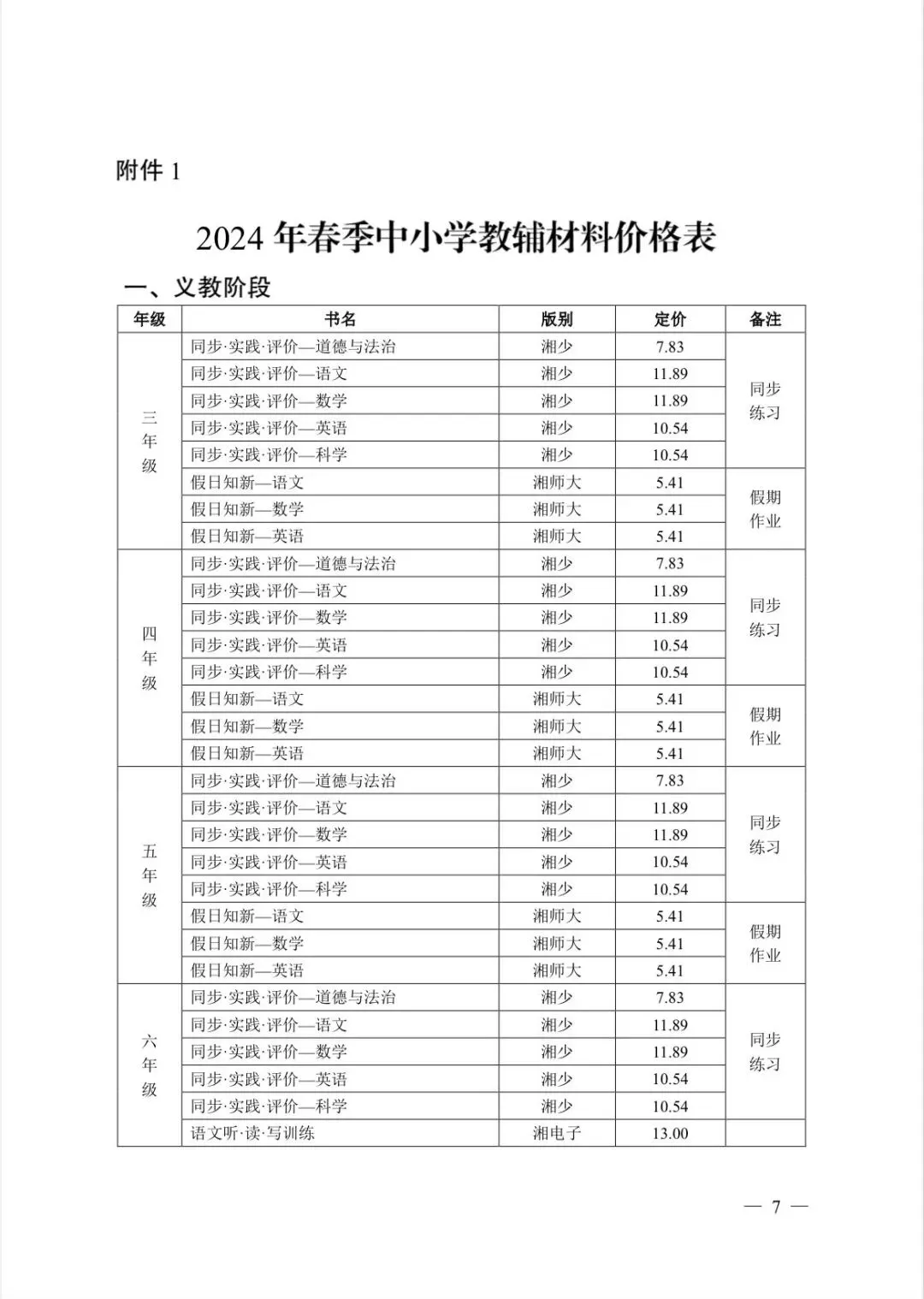 2.教材费。学校根据教学计划在湖南省发展和改革委员会、湖南省新闻出版局《关于核定2024年春季中小学教科书价格的通知》(湘发改价费规〔2024〕58号)中选定,据实代收。