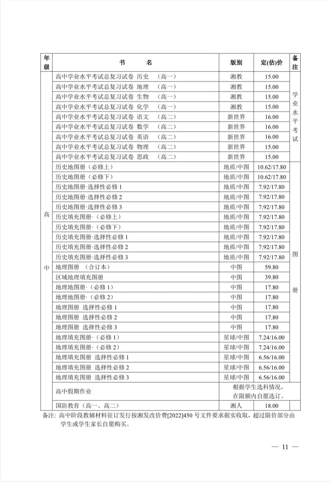 3.教辅材料费。由教育主管部门在《湖南省发展和改革委员会 湖南省新闻出版局、湖南省教育厅关于公布中小学秋季教辅材料指导价格目录的通知》(湘发改价费〔2020〕51号)中选定范围,由学生自愿征订选用,学校严格按照省发展改革委、省新闻出版局核定的价格据实收取,为学生无偿提供代购服务(见附件1)。