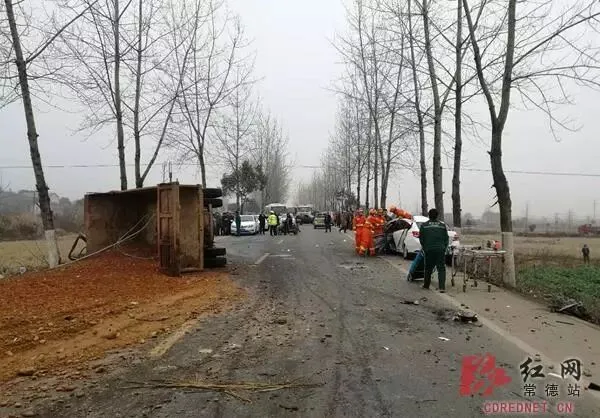 1月18日10时30分许,306省道常德市鼎城区镇德桥镇刘家桥村路段发生一起交通事故,一辆白色丰田小车在超车过程中与对面一辆轻型货车发生激烈碰撞,导致两车基本报废,货车驾驶人受轻伤,小车驾驶人当场死亡。