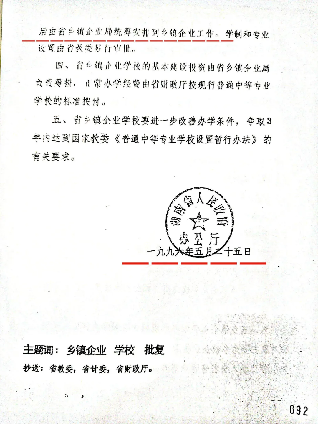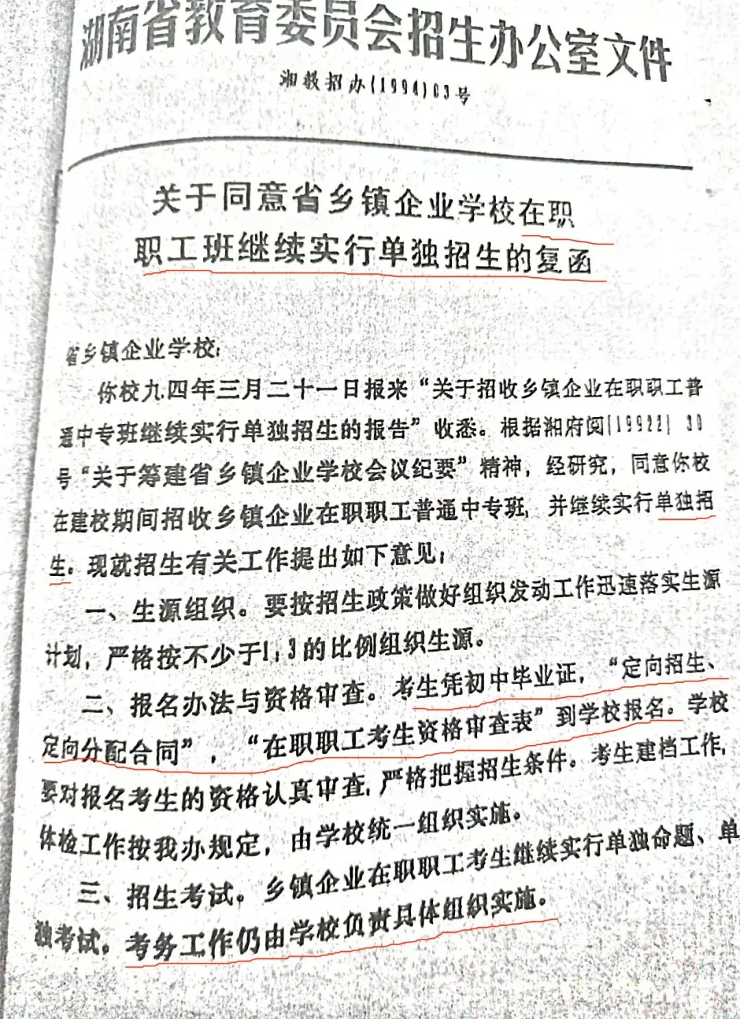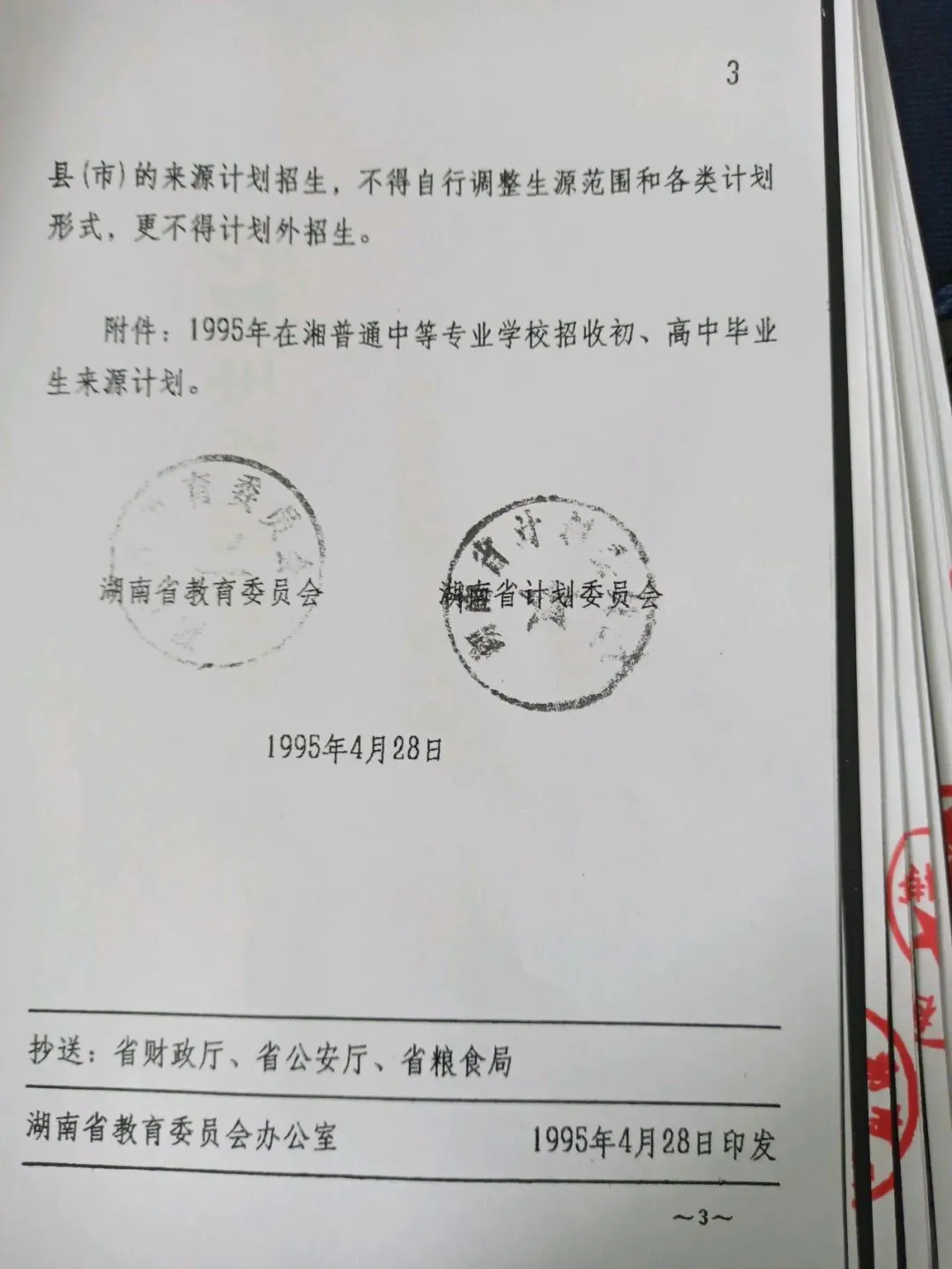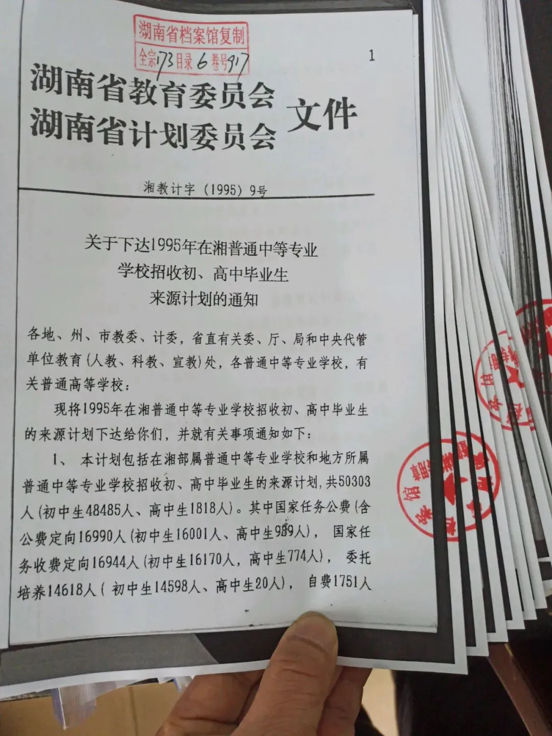 (1)湖南省教育厅2021年已向法院认可《湖南省教委和湖南省计委关于下达1995年在湘普通中等专业学校招收初、高中毕业生来源计划的通知》(湘教计字〔1995〕9号),所附《湖南省一九九五年普通中等专业学校招生生源计划》中没有湖南省乡镇企业学校的招生计划,且写入《(2022)湘01行终214号行政判决书》了。