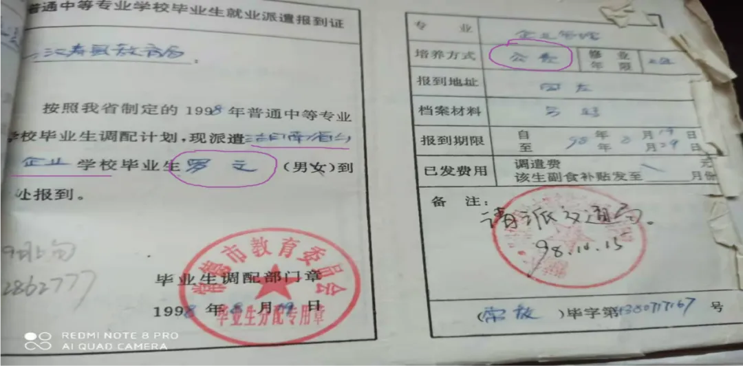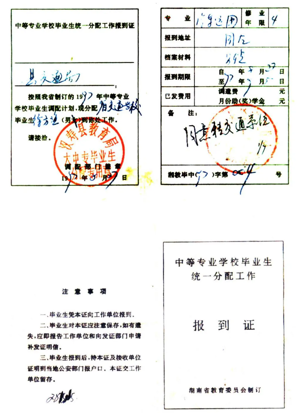 仅有的,2022年汉寿县教育局才正式拿出来的,且当庭就向法院否认的,1998年无形伪造的,徐方渔到汉寿县氮肥厂工作的报到证居然是依据1997年徐方渔毕业分配到汉寿县交通局工作的报到证篡改后作出来的。