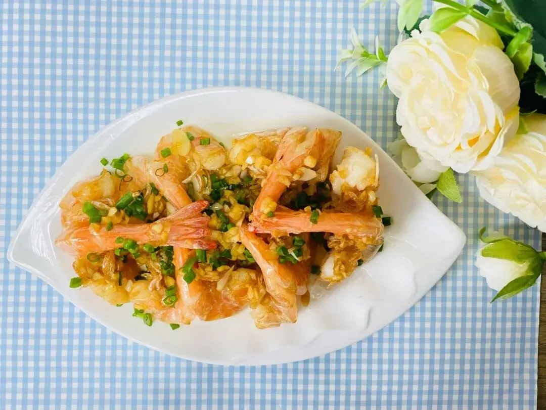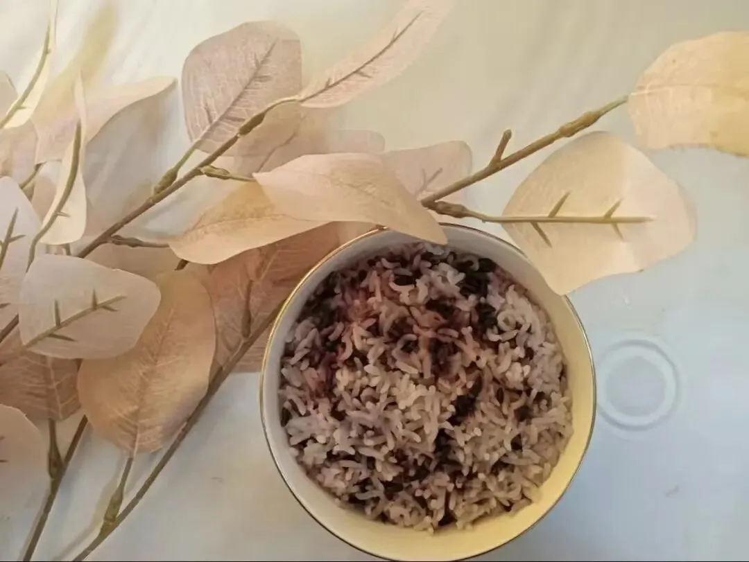 蒜香基围虾、芹菜香干炒肉、清炒菜心、筒子骨山药汤、黑米桃花香米饭