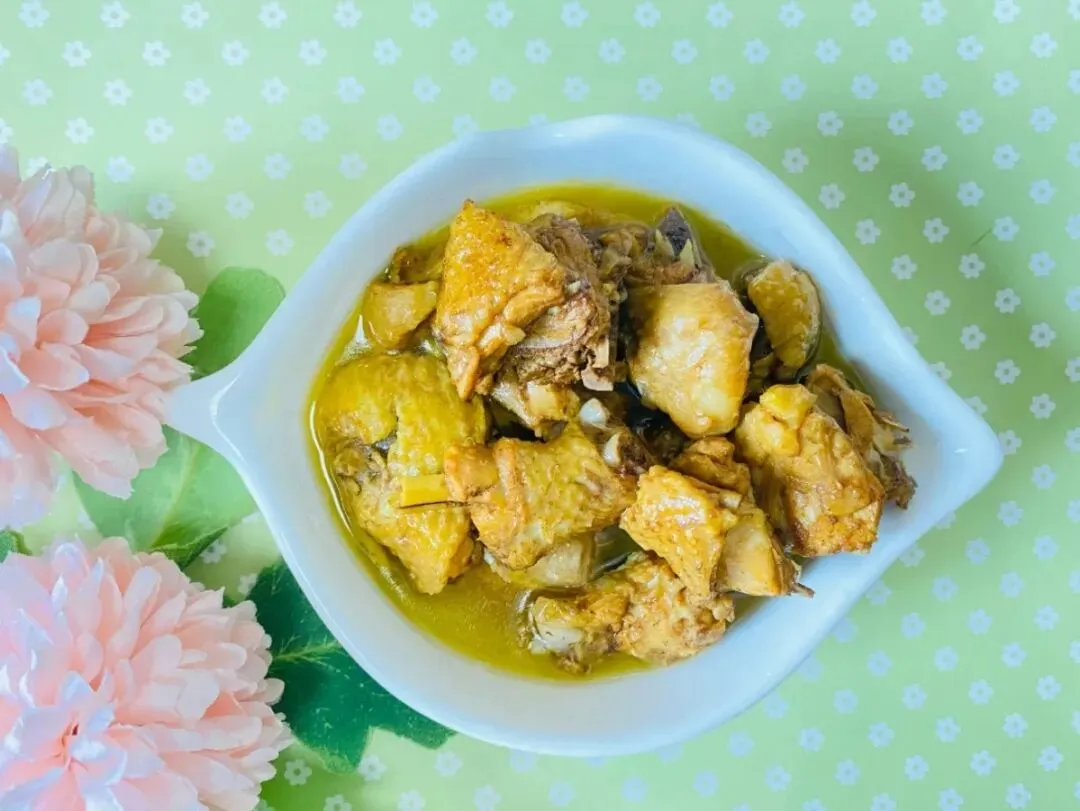 小炒仔鸡、韭黄炒肉、爆炒五号白、筒子骨萝卜汤、小米桃花香饭