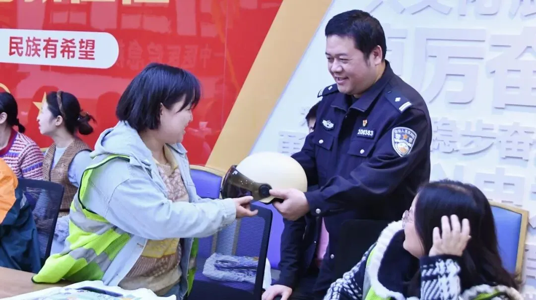 活动现场,民警播放了交通安全警示片,结合发生在常德市城区的典型交通事故案例,展示了戴头盔与不戴头盔的事故后果存在天壤之别。“2024年常德市交通事故中涉摩托车、电动车事故占比66.3%,骑行不戴头盔,头部缺乏保护,颅脑损伤风险巨大,而正确佩戴头盔,可降低72%的头部重伤风险,减少40%的致死率。”这些数据让快递员们深刻认识到日常工作出行时佩戴头盔的重要性。