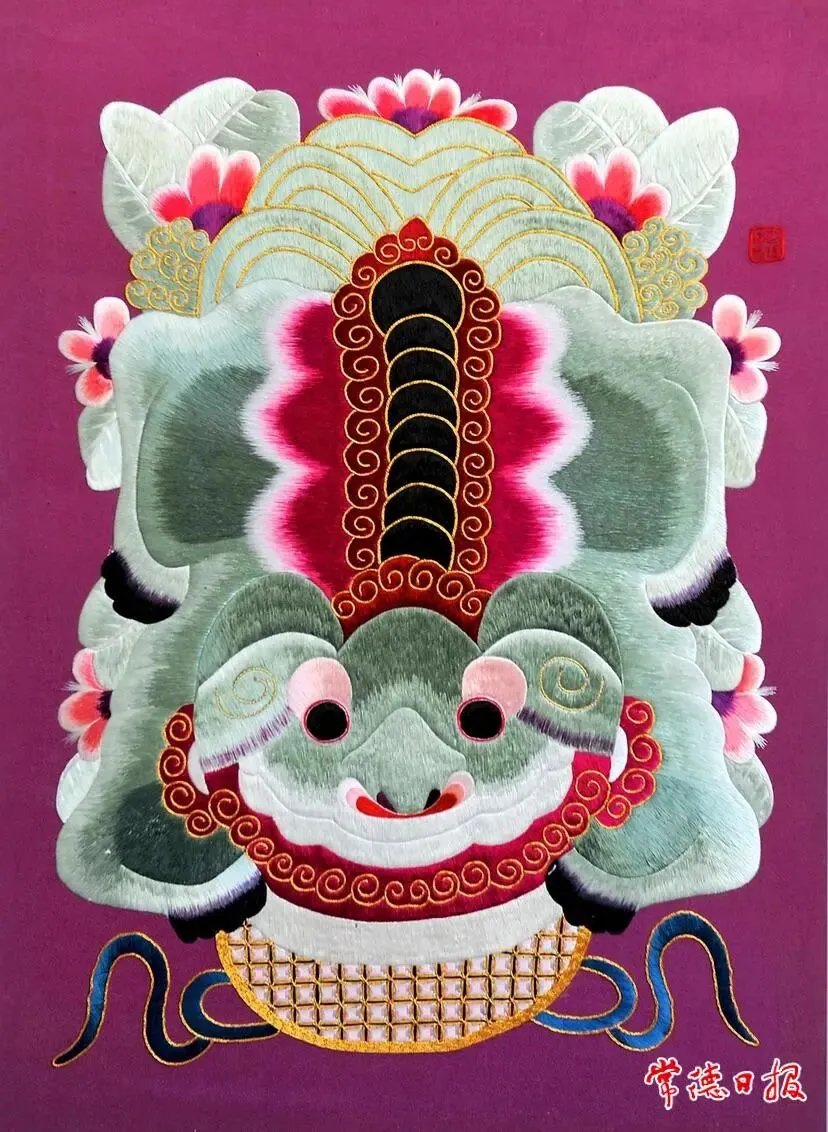 2023年中国(杭州)工艺美术精品博览会暨“神工杯”创意设计创作大赛日前在杭州白马湖会展中心举行,桃源刺绣传承人肖瑶有6幅作品参展。经过近一个月的评审,肖瑶与齐绘绣庄成员蒋运婷共同创作的刺绣单品《桃源麒麟吐瑞》获得大赛金奖。