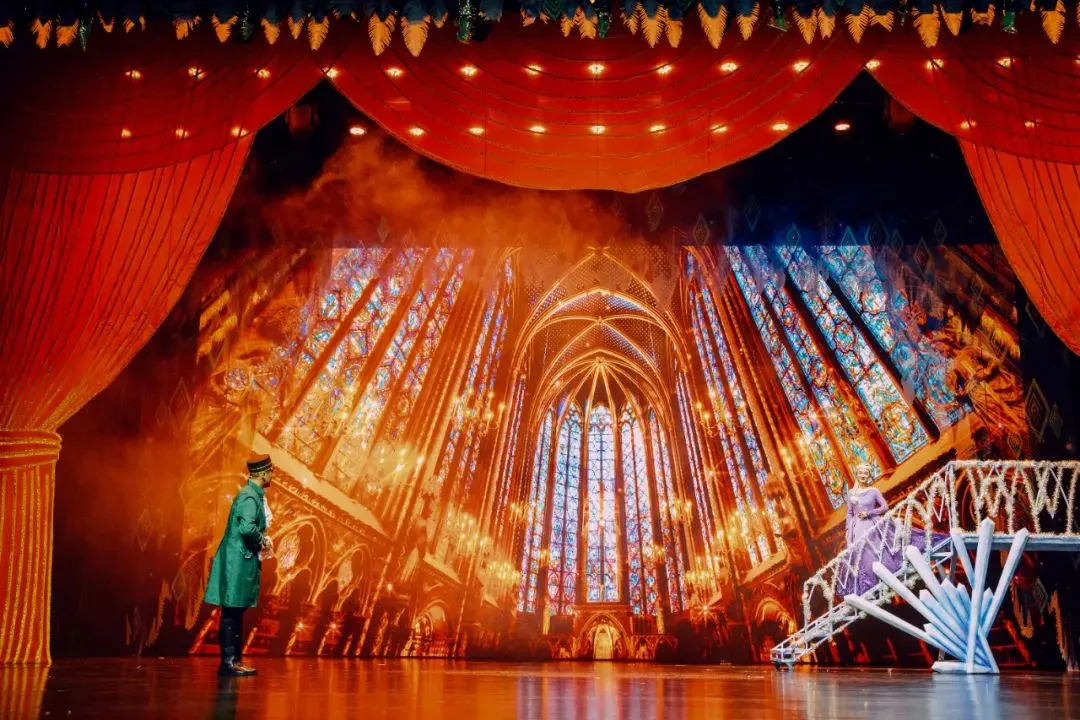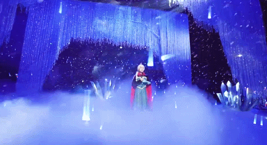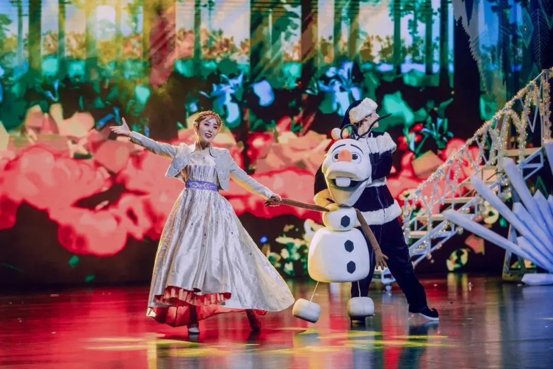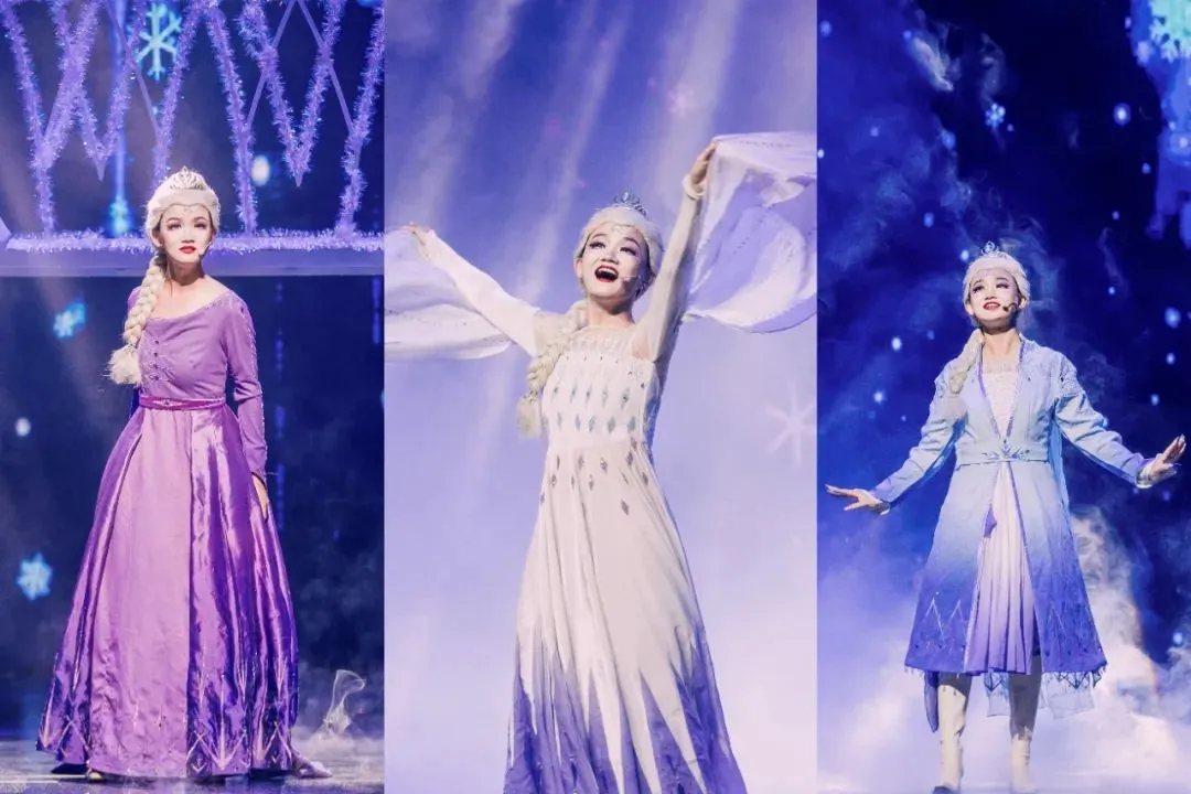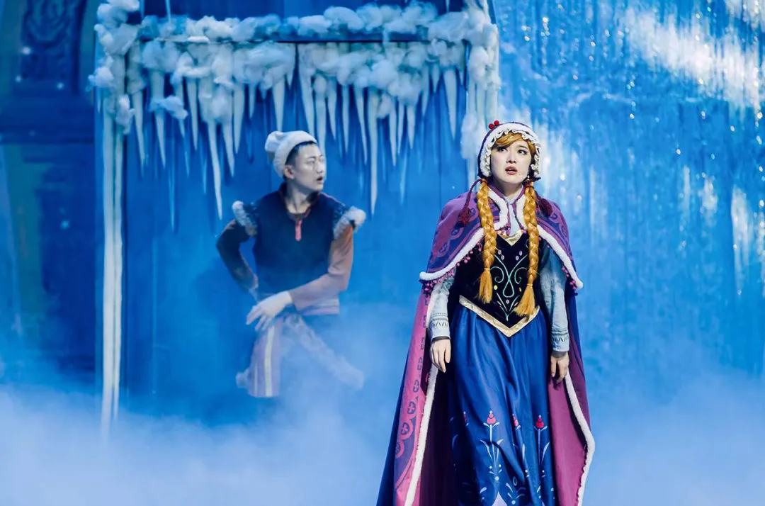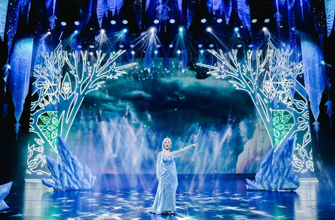 在《冰雪女王之星梦奇缘》中,就采用到了百老汇专用的舞台模式,借助声、光、电等表演技术,打破童话与现实的界限,实现了360°的全景沉浸体验。