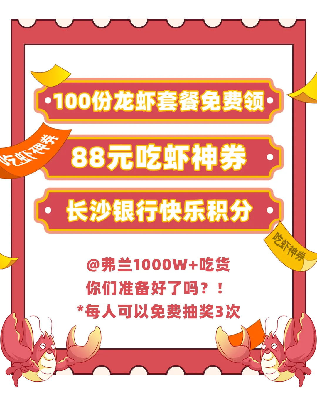 ②在弗兰社指定龙虾商户线下消费买单时,单笔消费超过88元立减88元,单笔消费限用1张;