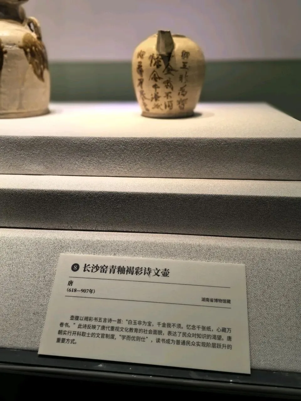 个人以为长沙窑陶瓷最大的历史文化贡献,就是保留了很多唐代民间诗词、歌谣、俗语,这些俗语诗词在《全唐诗》也未记载。