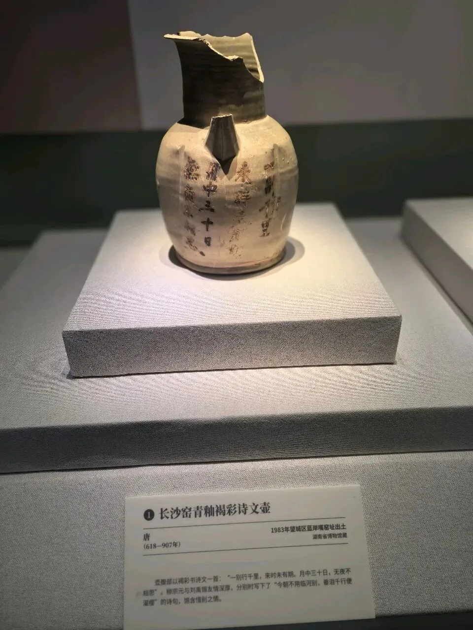 人间逆旅,此去如归。有这句诗文的长沙窑执壶原件,目前存于湖南省博物馆,可惜这次去湖南省博参观时,不巧省博二楼古陶瓷陶瓷馆因装修改造,不对外开放。
