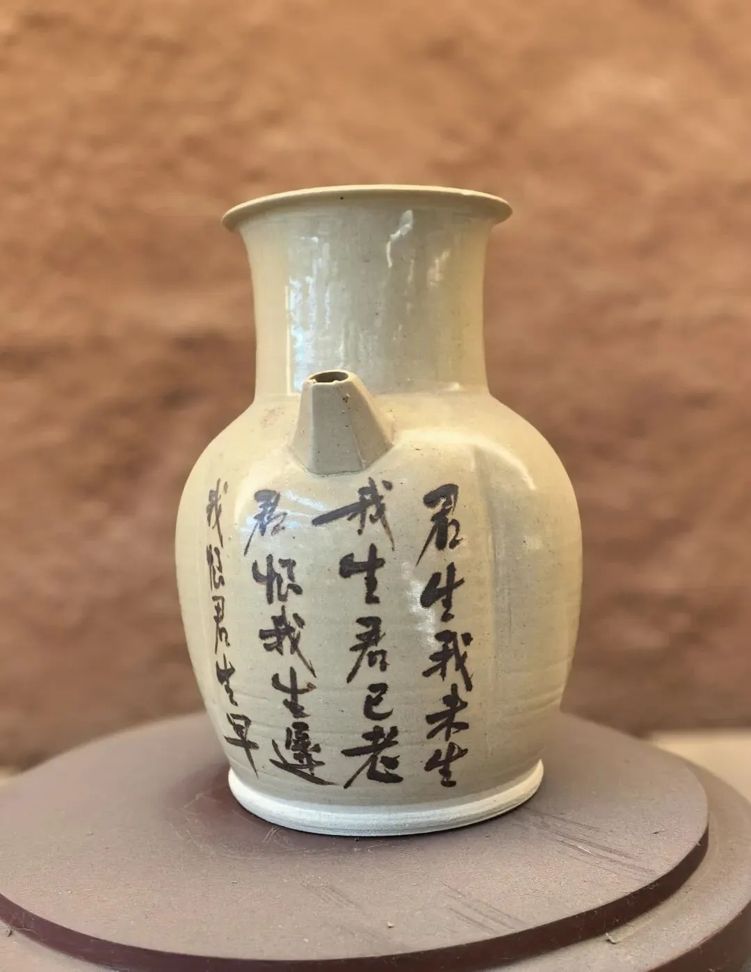 周末期间顺便逛了长沙天心阁古玩地摊,现场看到一件诗文瓷壶残件,上面诗文写有“罗网之鸟,悔不高飞”,很有意味。