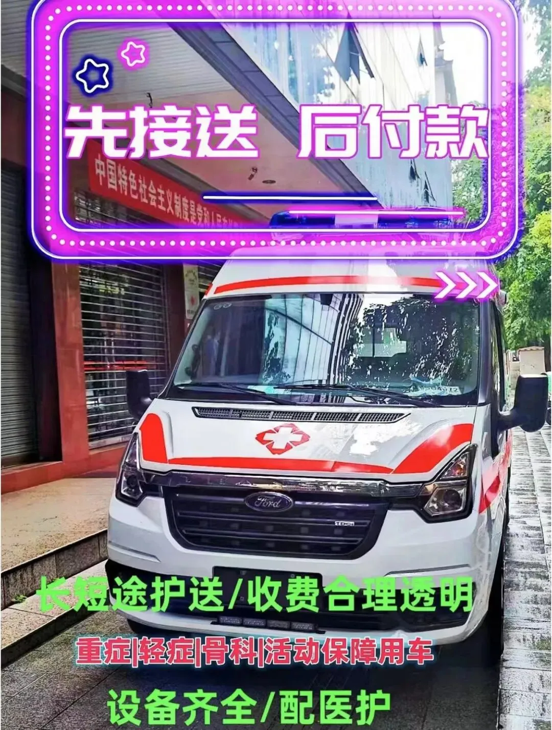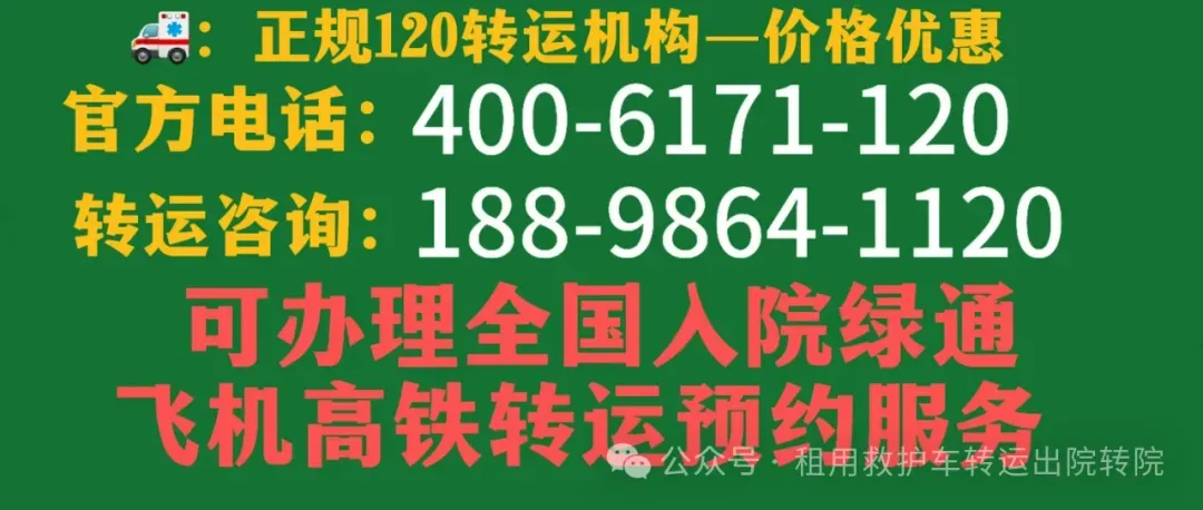 救护车出租转运服务'长途转运‘跨省转运’市内转运病人服务,针对新生儿,骨折病人,重症病人,危重病人,行动不便者复查,转院,转诊,跨省转运病人回家,我司车辆配有随车专业医护人,确保转运途中病人生命安全,以下是救护车转运预约和费用详解:24小时客服:4006171120 微信客服:18898641120 官方网站:www.120che.cn