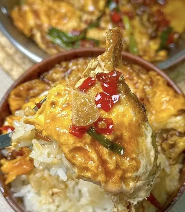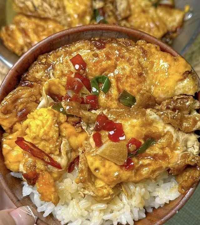 酱汁裹在蛋上 , 边缘微微焦脆 , 中间还是嫩的 , 这个口感...怎么形容呢 , 就是外面吃不到的那种家常味道。