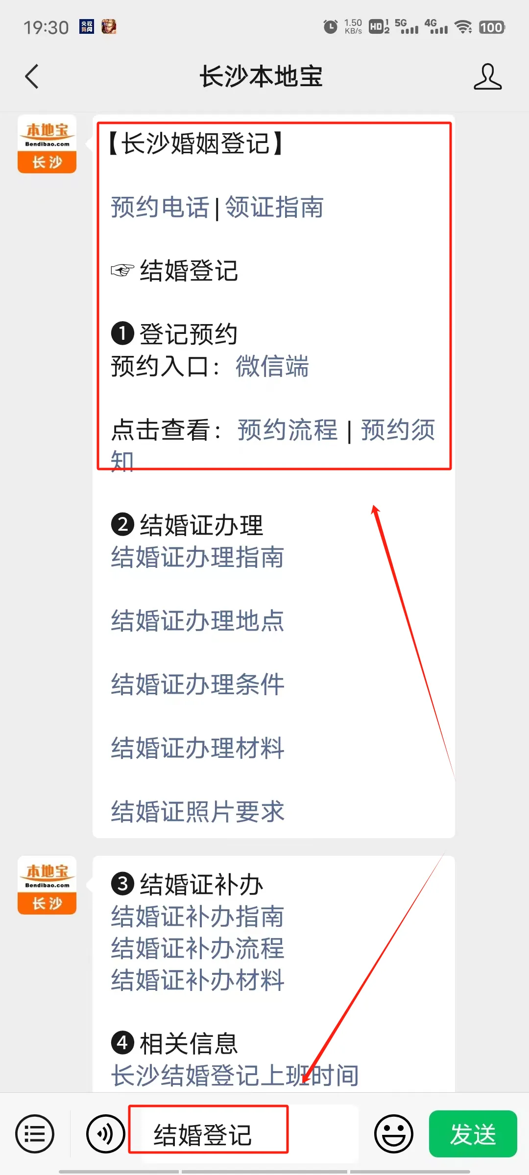 小编提醒:进入长沙本地宝,在对话框回复【婚检】即可获得长沙免费婚检定点医院、婚检材料、结果查询等信息