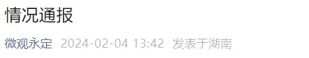 2024年2月3日21时许,永定区七十二奇楼内一茶馆因遭遇暴雪冻雨、收折关闭雨阳棚时发生棚顶坍塌,造成部分人员受伤。事件发生后,永定区立即组织有关人员现场处置,第一时间送医救治,调查事发原因,同时对辖区同类场所开展全面排查整治。目前收治入院5人,其中一人伤情较重,其余轻伤,均无生命危险,另有留观17人。善后和调查工作正在开展中。