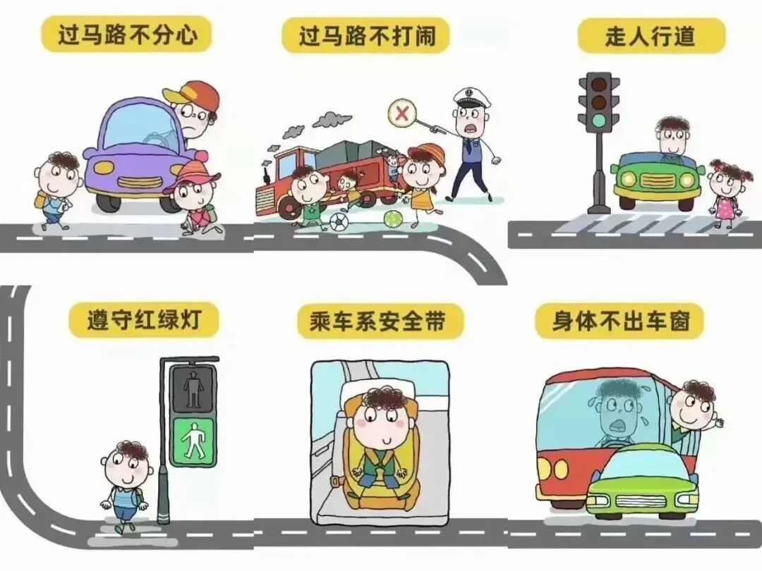 1.不让年幼的孩子独自出门,带孩子外出时,要遵守交通规则。
