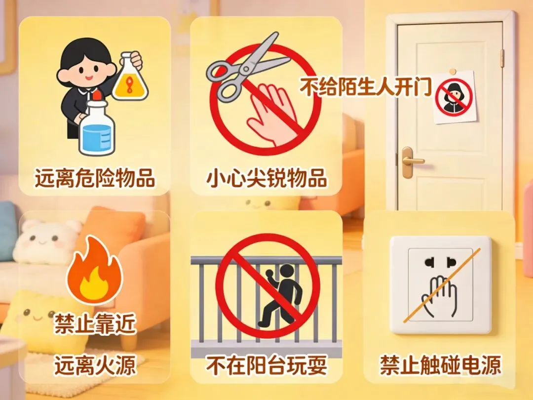 1.勿滞留,假期在家,不要留幼儿一人在家。