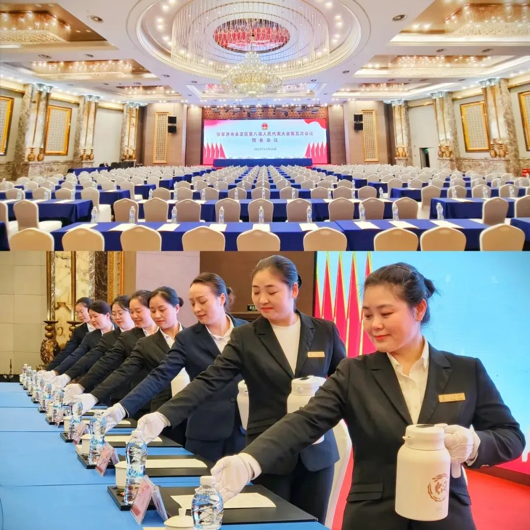 2025年12月中下旬,张家界市永定区第八届人民代表大会第五次会议、中国人民政治协商会议张家界永定区第八届委员会第五次会议、张家界市第八届人民代表大会第五次会议相继隆重召开。作为已连续九年荣誉承接此项重要接待任务的指定酒店,张家界阳光酒店以高度的政治责任感,将“最高标准、最严要求、最优服务”的核心方针贯穿始终,通过前瞻性周密部署、个性化精细管理和跨部门高效协同,再次圆满完成了会议接待与保障工作。