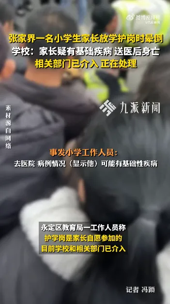 张家界一45岁家长站“护学岗”时死亡,涉事学校称其可能有基础疾病,教育局:“护学岗”是家长自愿参加,在处理这件事