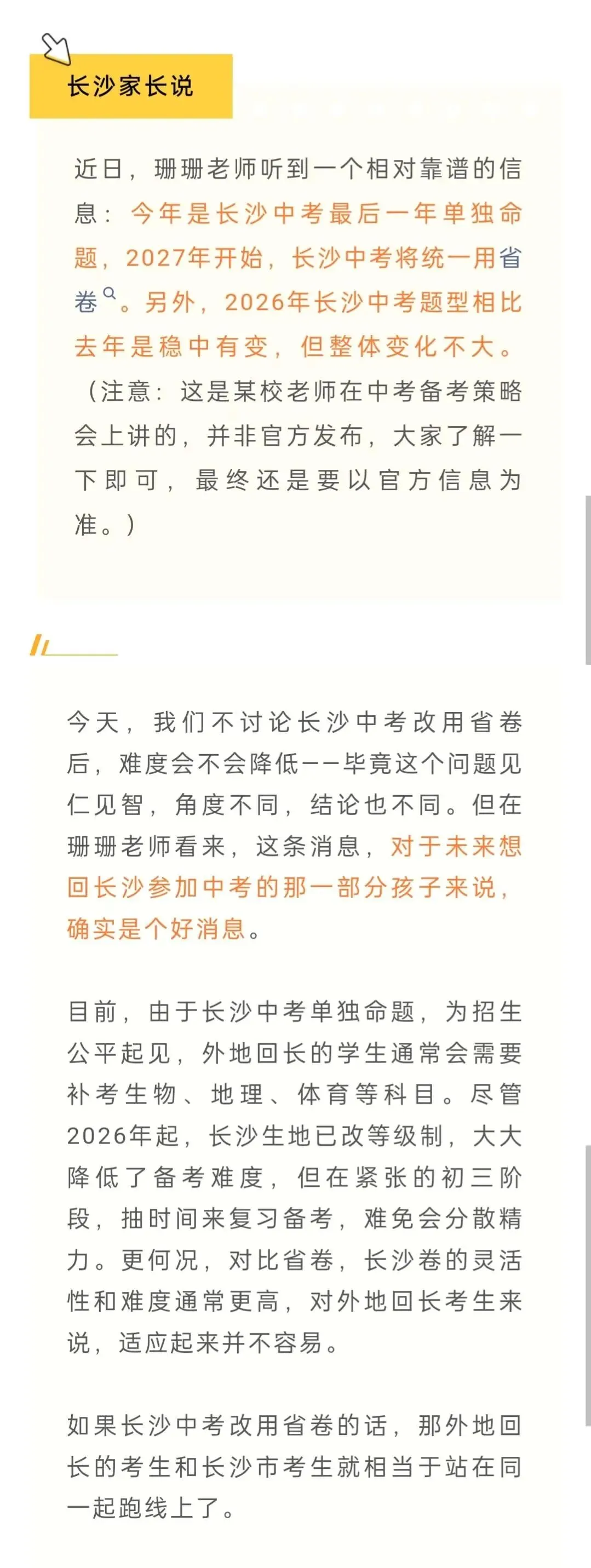 >长沙中考明年改省卷?这批学生更有利了!