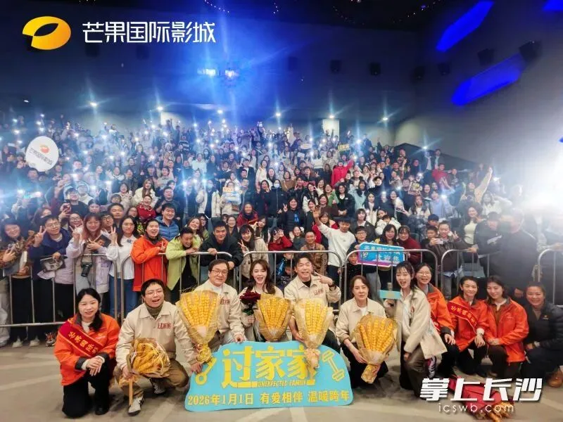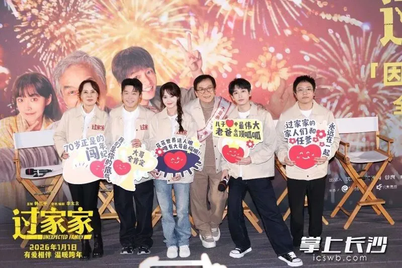 2025年12月31日,对长沙影迷来说是一个不同寻常的日子。长沙伢子、导演李太言带着新作《过家家》,携领衔主演成龙、张佳宁,主演潘斌龙、李萍与大家跨年。成龙与一众主创接连造访了潇湘青春影城长沙悦方ID MALL巨幕店、芒果国际影城万达杜鹃店等影城,为观众送上了最治愈的跨年祝福。