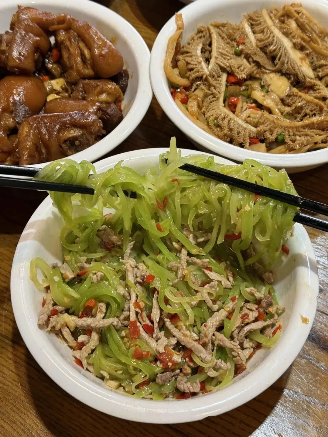 基本上用餐的都是附近的老口子,肉酱莴笋丝 火爆腰花 猪脚 牛蛙……比一些网红店真的好吃太多太多!!