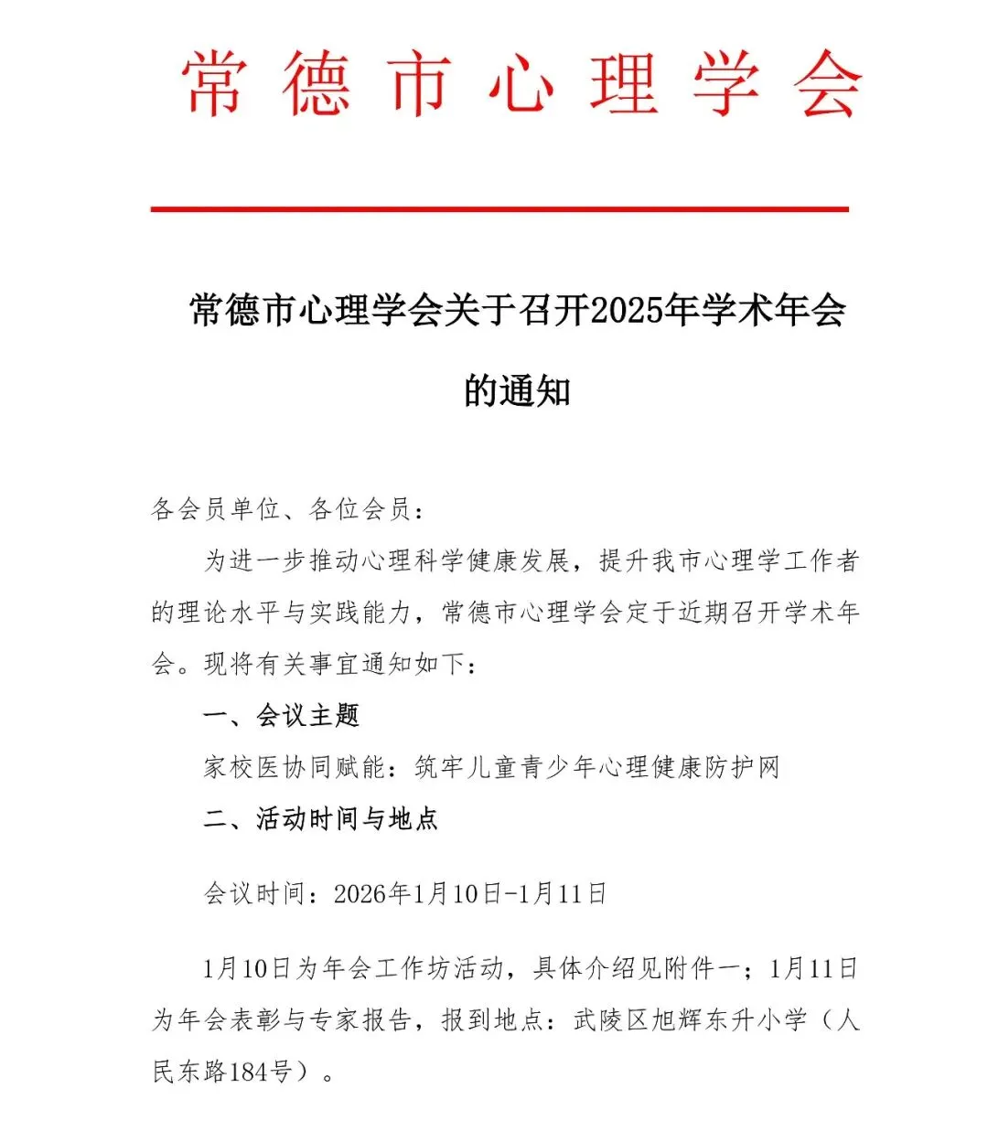 >常德市心理学会关于召开2025年学术年会的通知