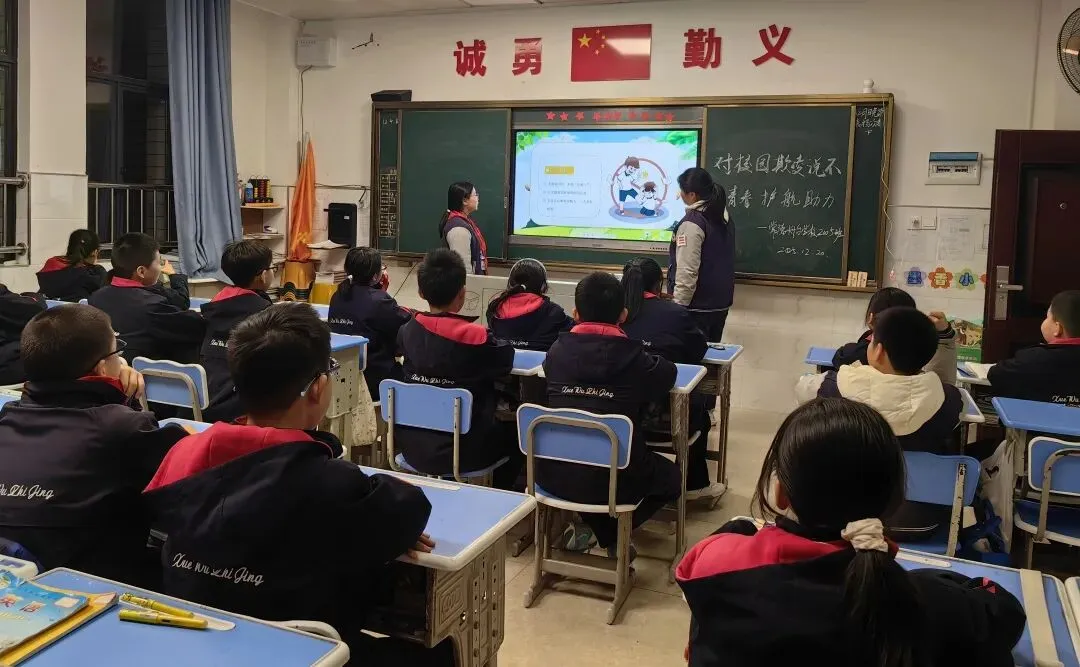 为聚焦品德养成与心理成长核心目标,12月小学部分层开展多元化主题班队会:以 “方寸之间有规矩,言行之中见品格” 主题规范教育、《管住自己我能行》心理辅导为抓手,强化学生规则意识与自律能力;以《语言美才是真的美》文明用语心理健康课、“对校园欺凌说不,为青春护航助力”防欺凌主题班会为载体,培育学生文明素养与自我保护观念;以“亿山河破碎,惜岁月静好”“寒雪傲梅守安全,师生同心筑防线”主题活动,切实丰富学生精神世界,厚植品德根基。