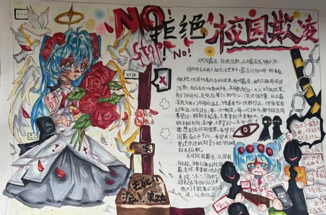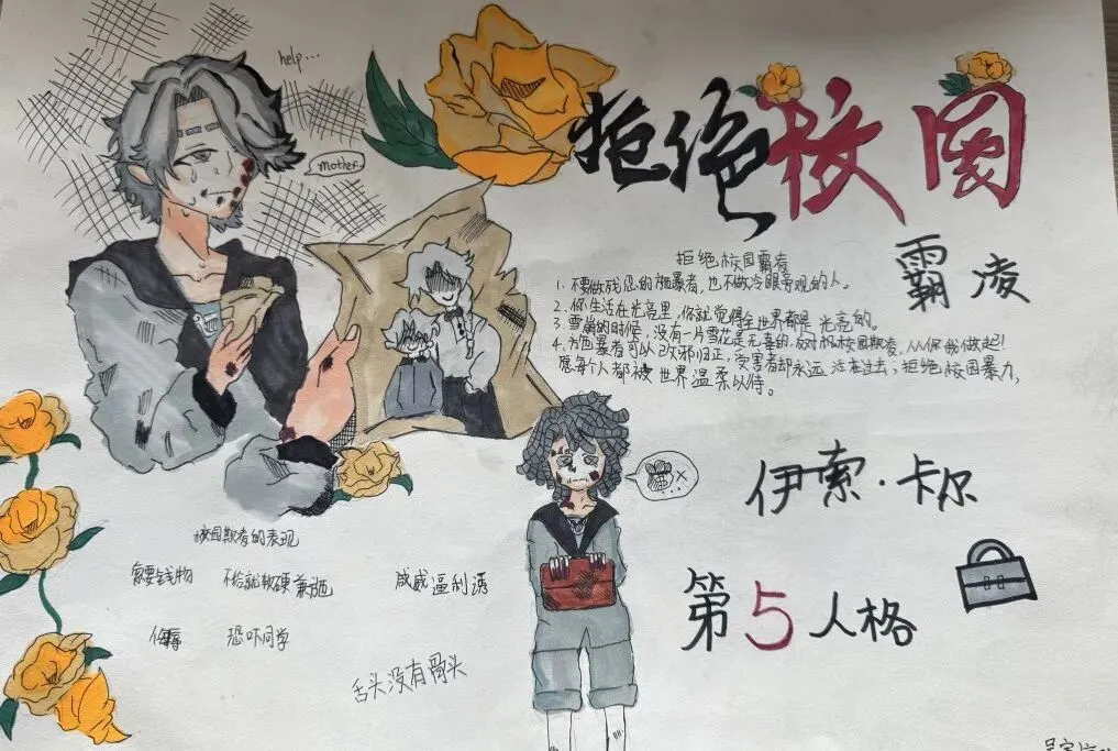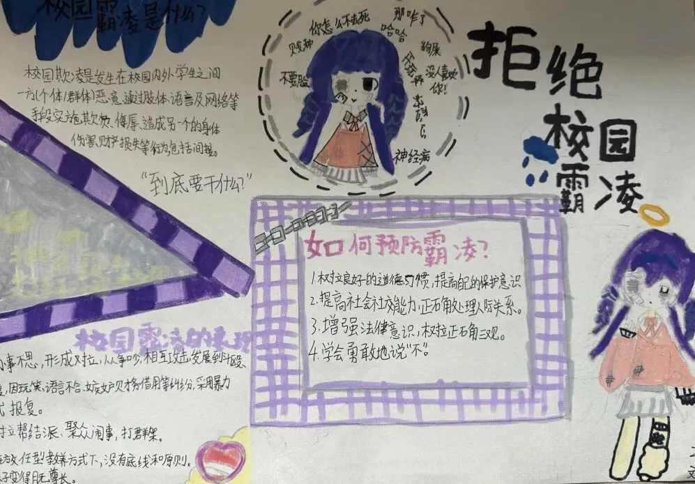 收集并上报防欺凌主题优秀绘画、征文作品,四一班、五一班等13个班级作品完成优秀,充分展现学生创意才华与品德认知。