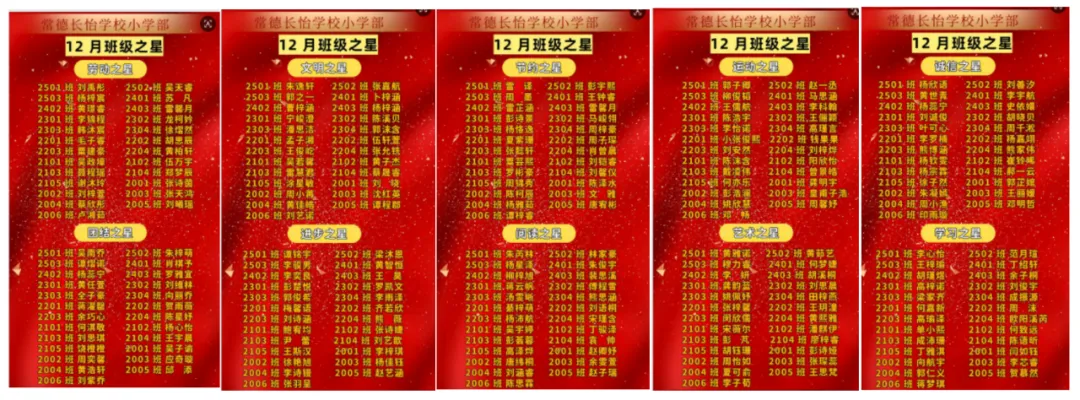 其中一二班、五三班、六五班在本学期凭借持之以恒的努力,累计10次获评“优秀班级”,成功摘得“勋章班级”荣誉称号,成为全校班级的标杆。