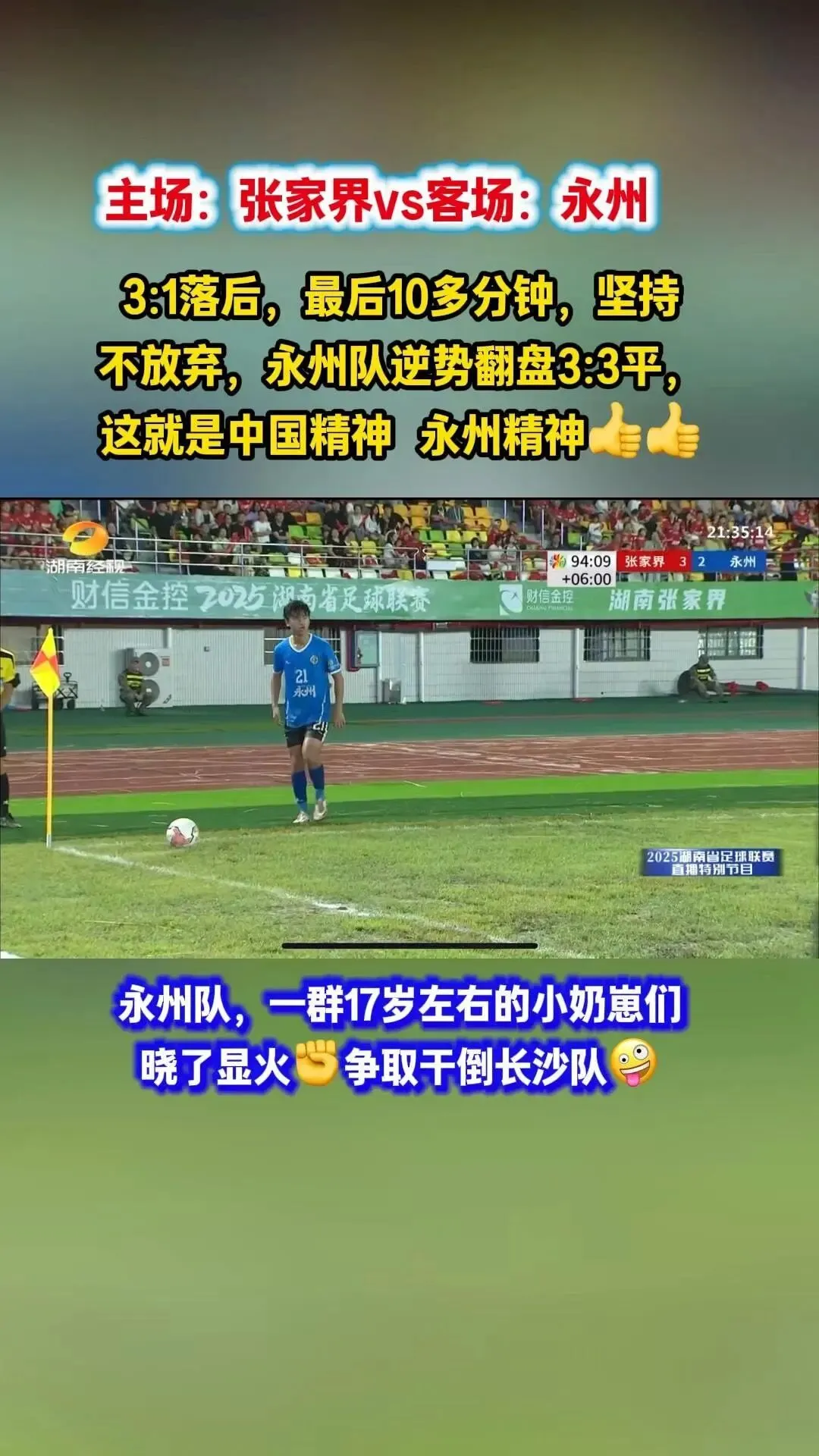 这一刻,永州队的坚持终于开花结果,这不仅仅是一个进球,更是全队那种“死磕到底”精神的集中爆发。