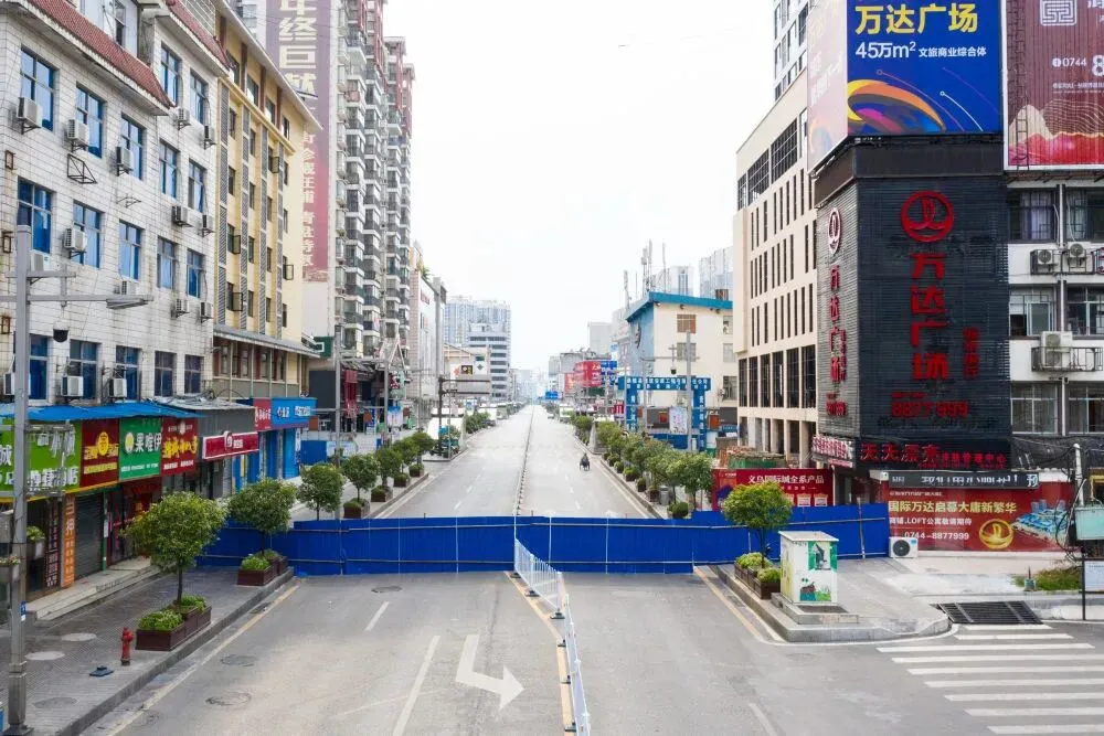 ▲8月7日,张家界市永定区回龙路和崇文路交汇口路口的隔离挡板(无人机照片)。新华社记者 陈思汗 摄