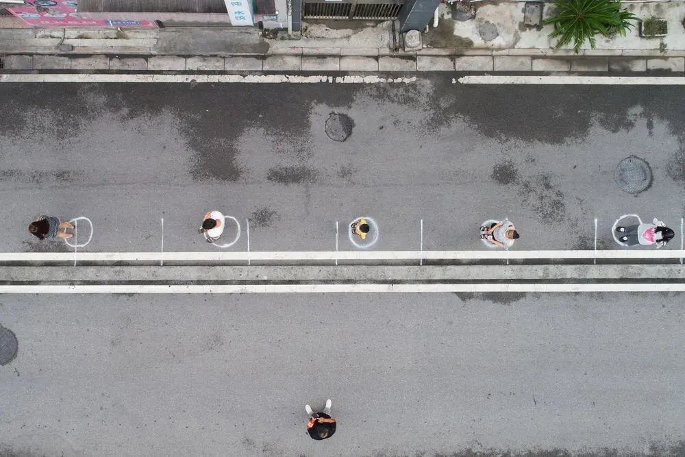 ▲8月10日,在张家界市永定区官黎坪街道,居民在排队做核酸检测(无人机照片)。新华社记者 陈思汗 摄