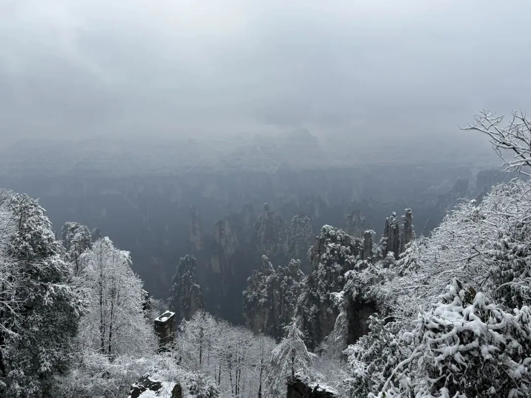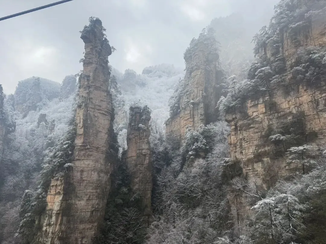 31日晚准备启程的时候,刷到张家界今年初雪,当时还有些担心是否上山索道会被封,所幸元旦当天下午抵达时一切正常,我和张家界也因天公作美,在彼此新年的第一天,在初雪中邂逅。