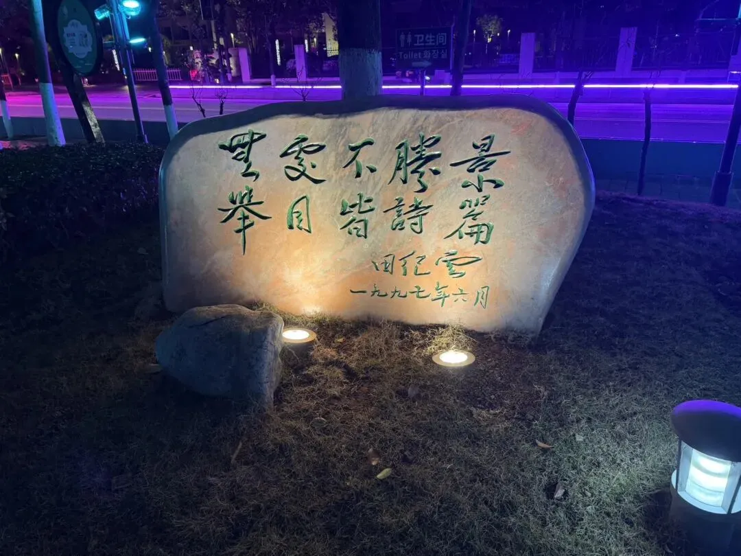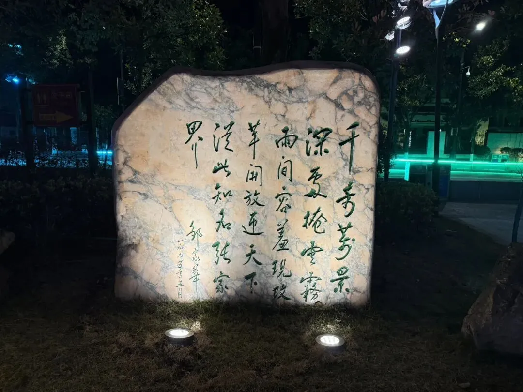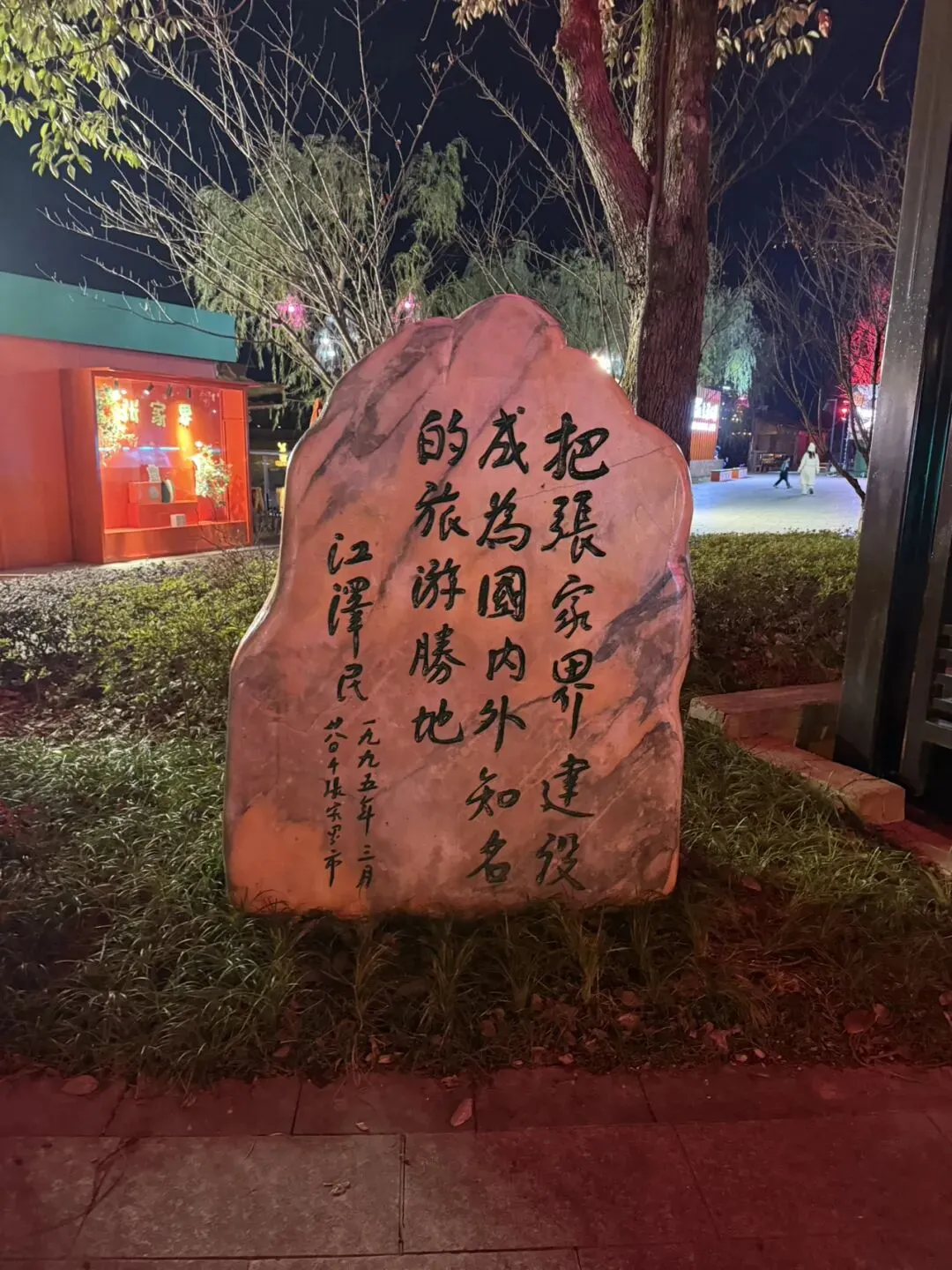 看完演出,走回酒店时路过了一个公园,偶然发现公园石碑篆刻了很多大师提字,足见张家界的引人入胜。明日继续解锁张家界新地图,期待万分。