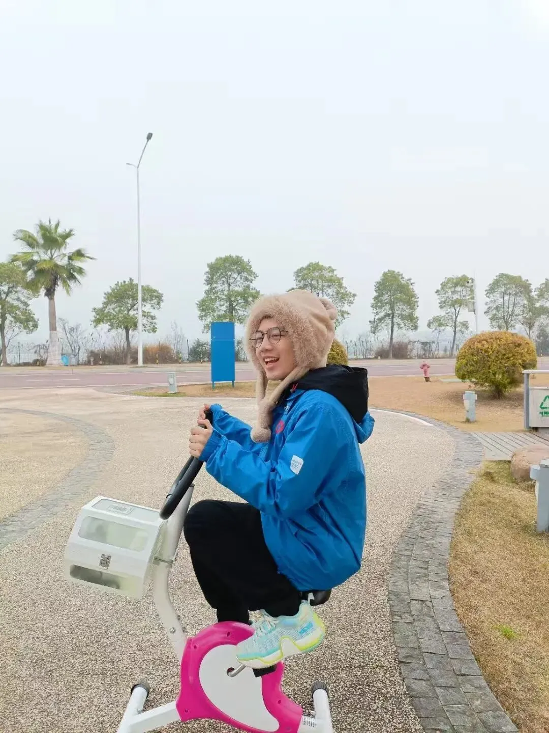 “啊,忘了你听不懂了,他说我们不要往后倒着骑,那样会破坏这个车”