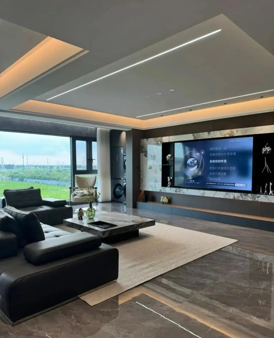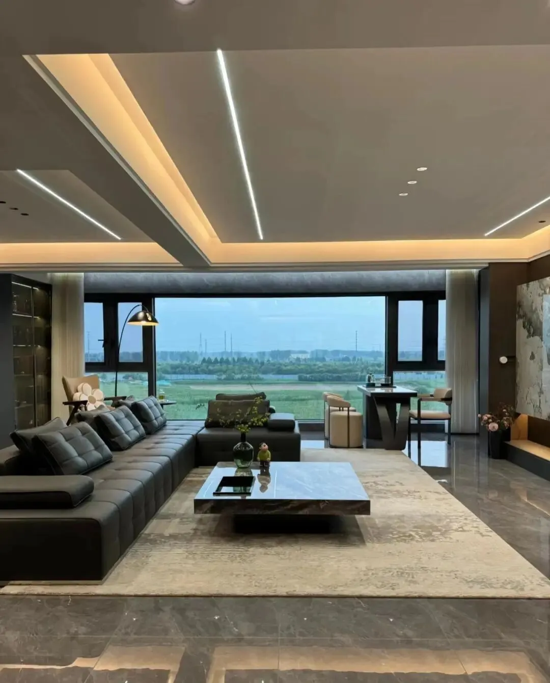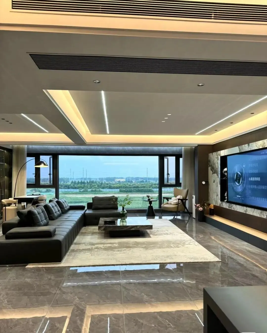 客厅空间或许选择无主灯设计是最正确的决定!射灯+灯带+线性灯,色温4000 k.整体很不错哈!