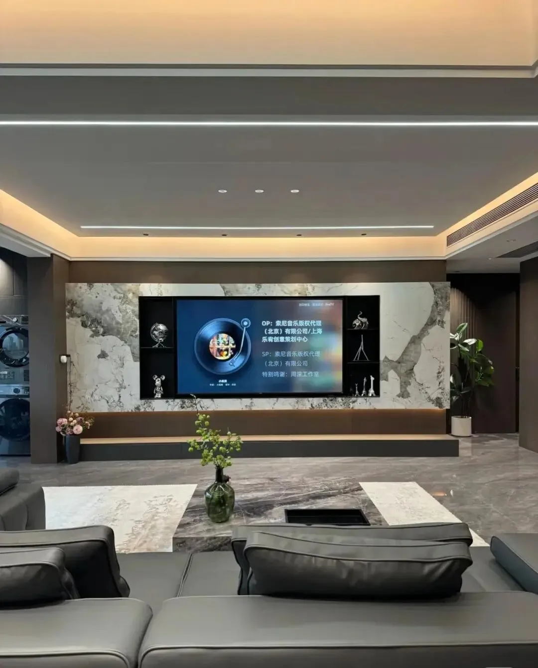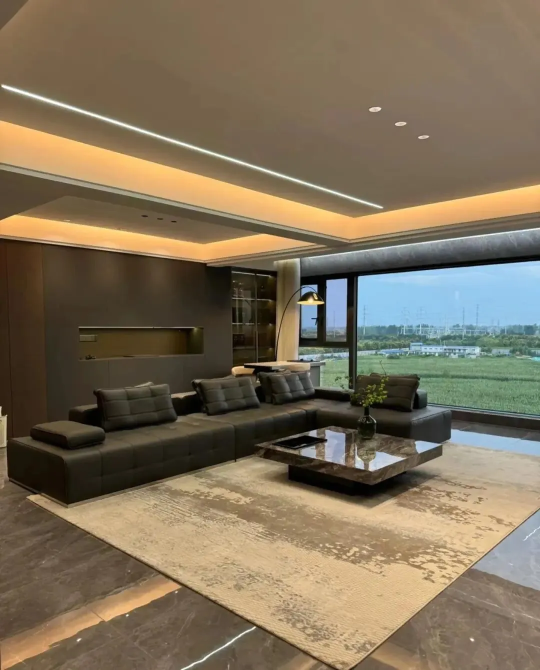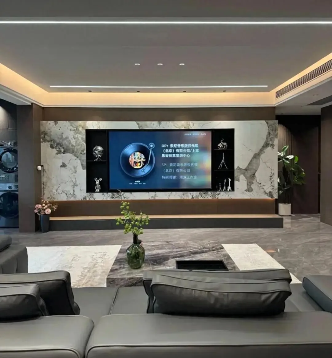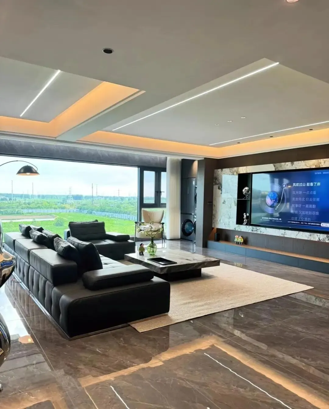 客厅空间或许选择无主灯设计是最正确的决定!射灯+灯带+线性灯,色温4000 k.整体很不错哈!