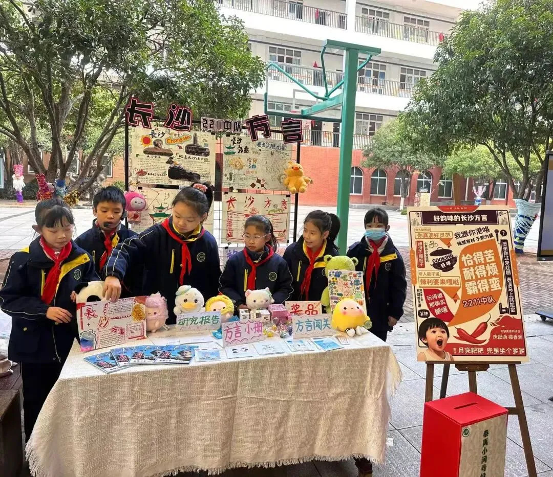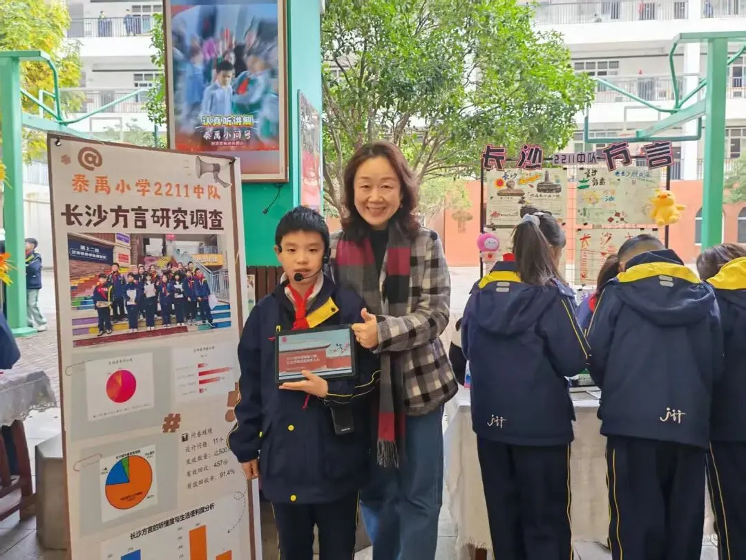 泰禹小学2211 班“泰禹小问号”项目组的同学们,带着对家乡文化的热爱,开启了一场关于长沙话的探索之旅。他们用问卷、访谈摸清大家的真实需求,再用手册、画报、情景剧解锁方言传播新姿势,让乡音在创新中焕发新生~