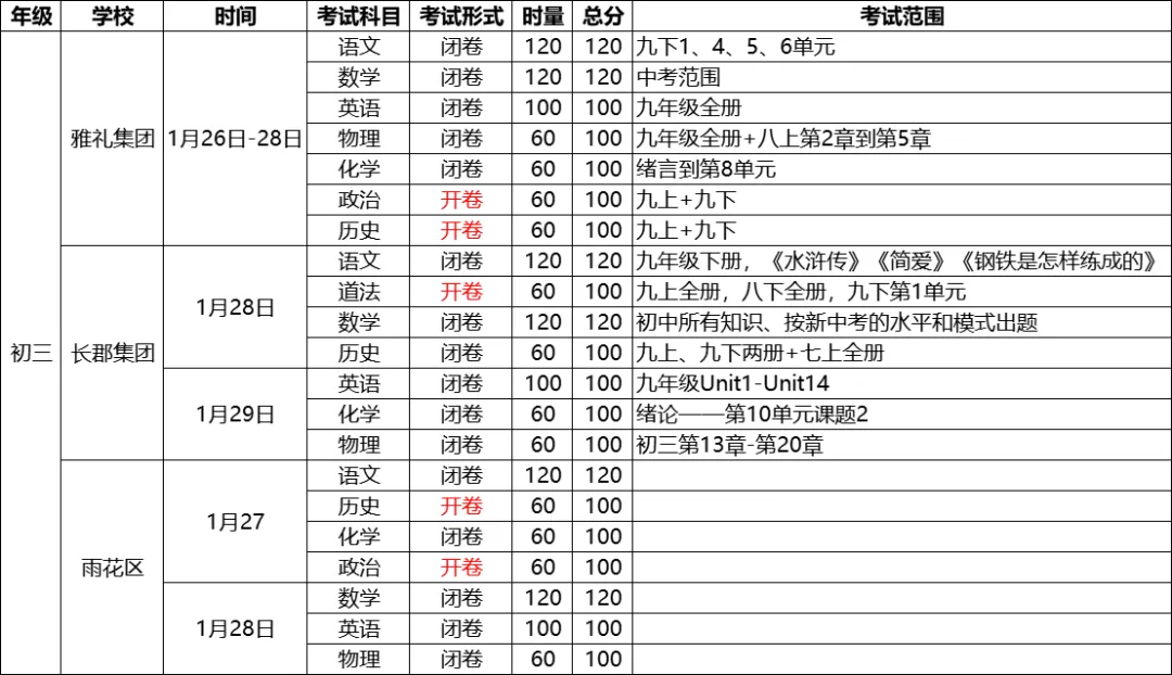 长沙各校期末考试在即!小编为大家整理了时间及考纲,快来领取往年真题吧!