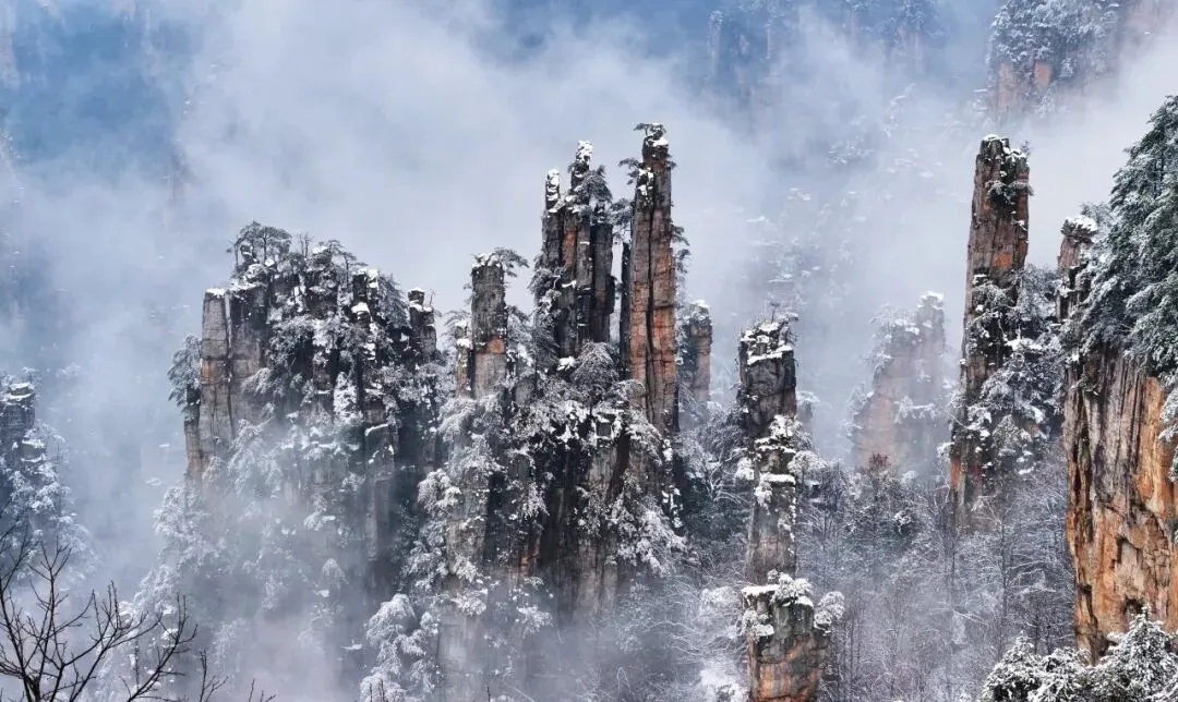 冬天的张家界安静、纯粹,雪后的风景带给我们的完全是顶级视觉体验。如果你看过它春夏的绿,那冬天的白绝对值得再来一次。