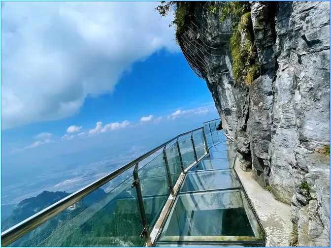 到了山顶,路的选择就很明显:东线、西线,绕一圈,玻璃栈道在其中一段等着。玻璃栈道其实不长,但风把“紧张”吹得很具体,脚掌踩上去,透明下面的落差像把胃轻轻拎了一下,心跳会自己加快。护栏上挂着安全绳,金属扣碰撞的叮当声是亮的,像一小串银光在晃。有人贴着岩壁走,有人干脆扶着栏杆停一停;停下来反而更稳,风从指缝里穿过去,指尖发凉,整个人会忽然安静。要是恐高也别硬扛,栈道旁边常有非玻璃的绕行段,走在石板上踏实得多,照样能把云、崖、树都看进眼里。