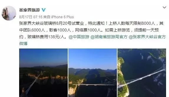张家界大峡谷景区及玻璃桥门票已全部售完