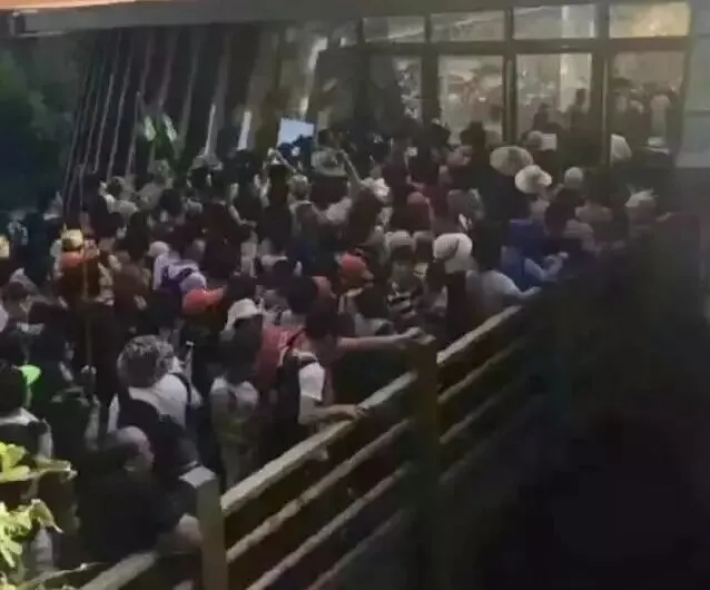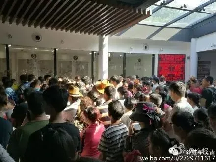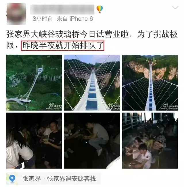 众多外地自助游客通宵守候在玻璃桥购票大厅,