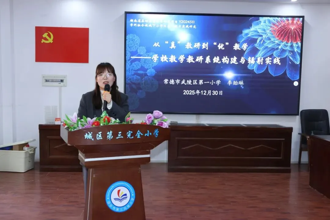 武陵一小教科室主任李贻琳则以《从真教研到优教学——学校教学教研系统构建与辐射实践》为题,分享了学校教研体系建设的顶层设计与落地经验。她深入剖析了如何通过机制创新、主题深耕、团队共进,将教研活动做实、做深、做优,从而系统化推动教师专业成长与教学质量全面提升。报告内容扎实,既有理论高度,又极具实践操作性,为兄弟学校教研工作的系统性优化提供了宝贵借鉴。