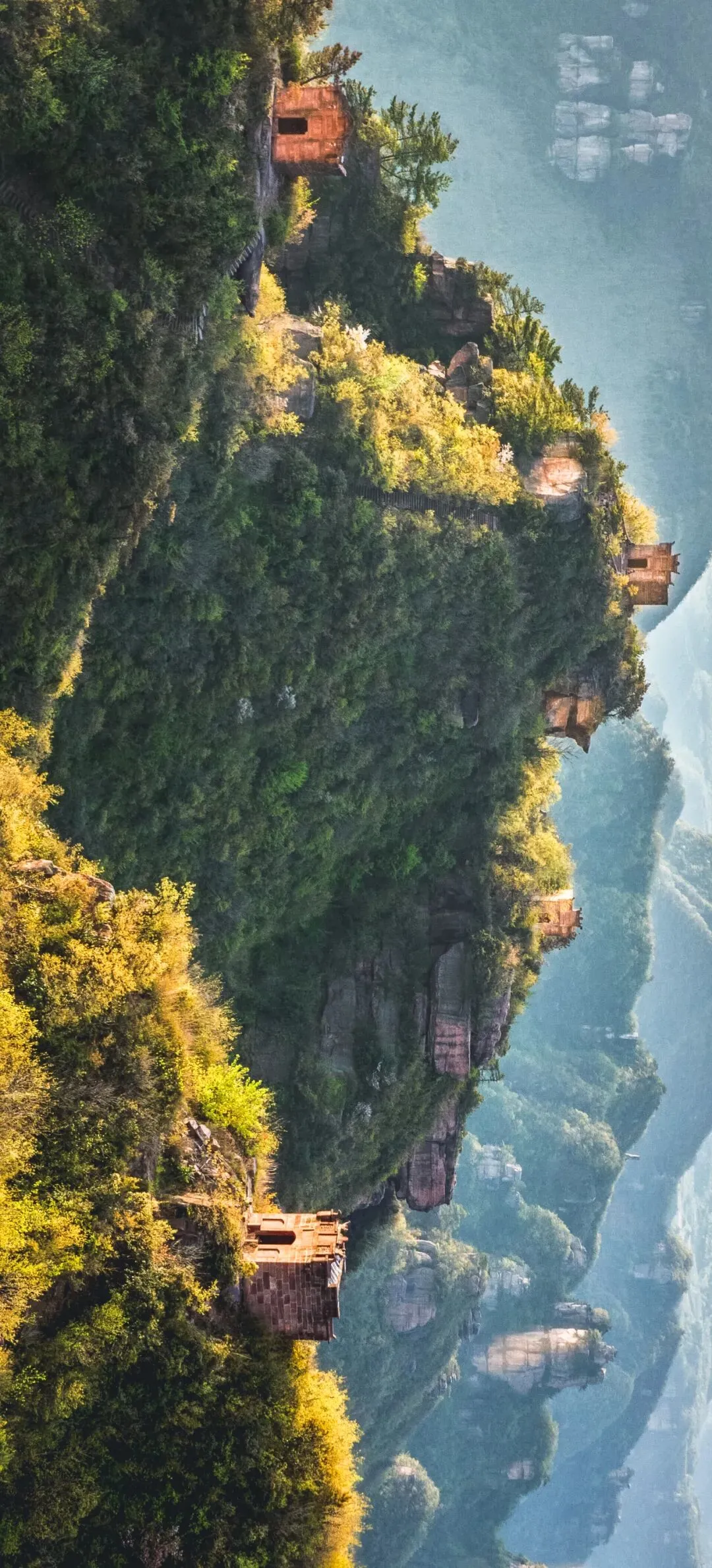 ▲ 石门壶瓶山镇文峰山与村内人家。 摄影/陈正军