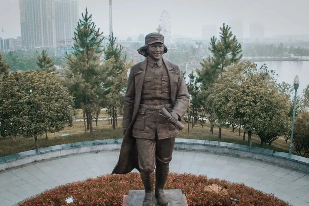 ▲ 丁玲公园丁玲塑像。 摄影/陈敏捷