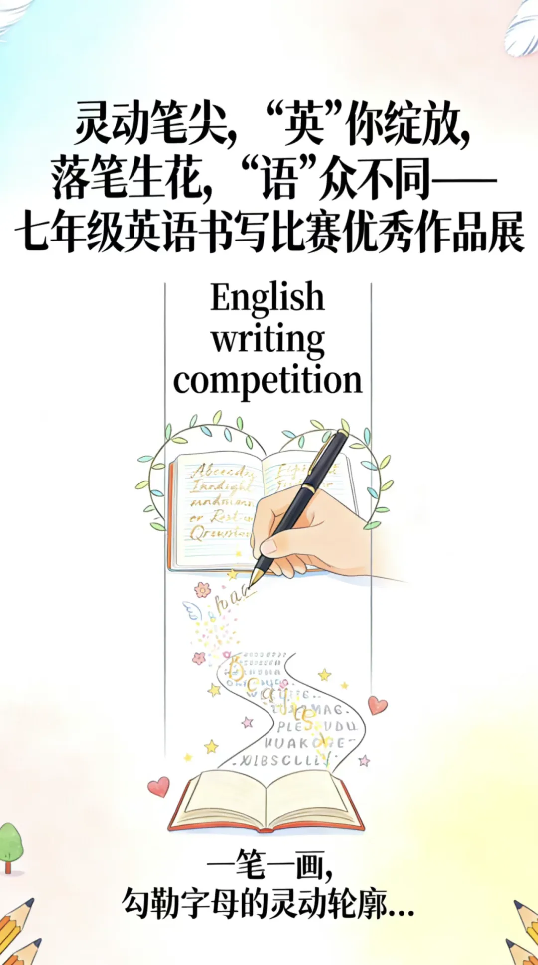 一笔一划筑根基,一字一句见真章。此次英语书写比赛,不仅为学生搭建了展示自我的舞台,更让“规范书写、认真做事”的种子在少年心中生根发芽。愿每一位学子都能以此次比赛为起点,让笔下的文字绽放光彩,让良好的书写习惯伴随成长之路,一路生花,一路芬芳!