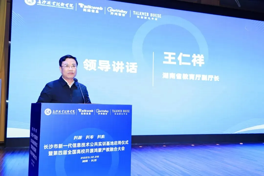 12月26日,在湖南省人力资源和社会保障厅、湖南省教育厅的指导下,由长沙市人力资源和社会保障局、湖南湘江新区民政和社会保障局主办,长沙市新一代信息技术公共实训基地、长沙职业技术学院、拓维信息、开鸿智谷、湖南省鲲鹏生态创新中心等单位共同举办的“长沙市新一代信息技术公共实训基地启用仪式暨第四届全国高校开源鸿蒙产教融合大会”在长沙隆重举行。此次活动标志着湖南省在推动自主信息技术产业发展与深化产教融合方面迈出了坚实一步,汇聚了政行校企多方力量,共同为开源鸿蒙生态的人才培养与产业创新注入强劲动力。图/活动现场